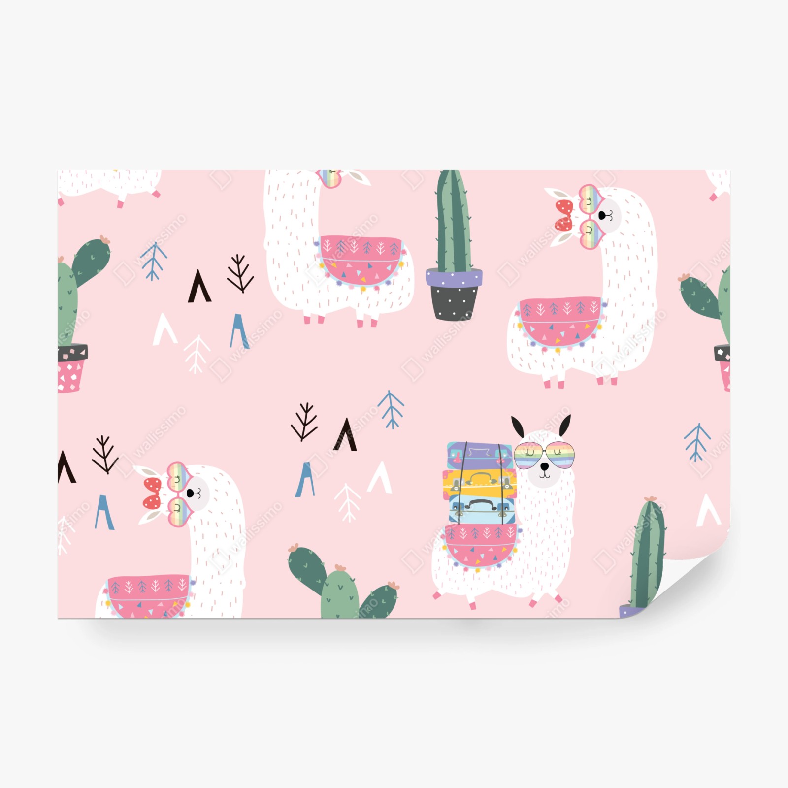 sanfte pastell-lamas und kakteen bilden ein verspieltes boho-muster, das jedes kinderzimmer aufhellt.MehrWeniger