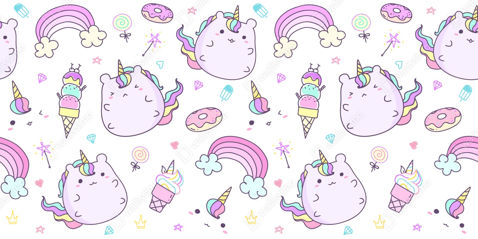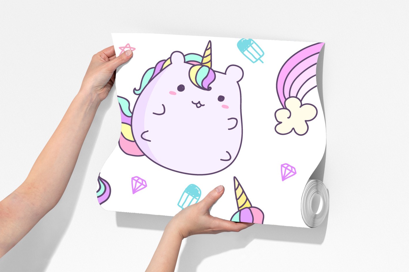 Fototapete verspieltes pastell-einhorn-katzenmuster – Wallnifity®