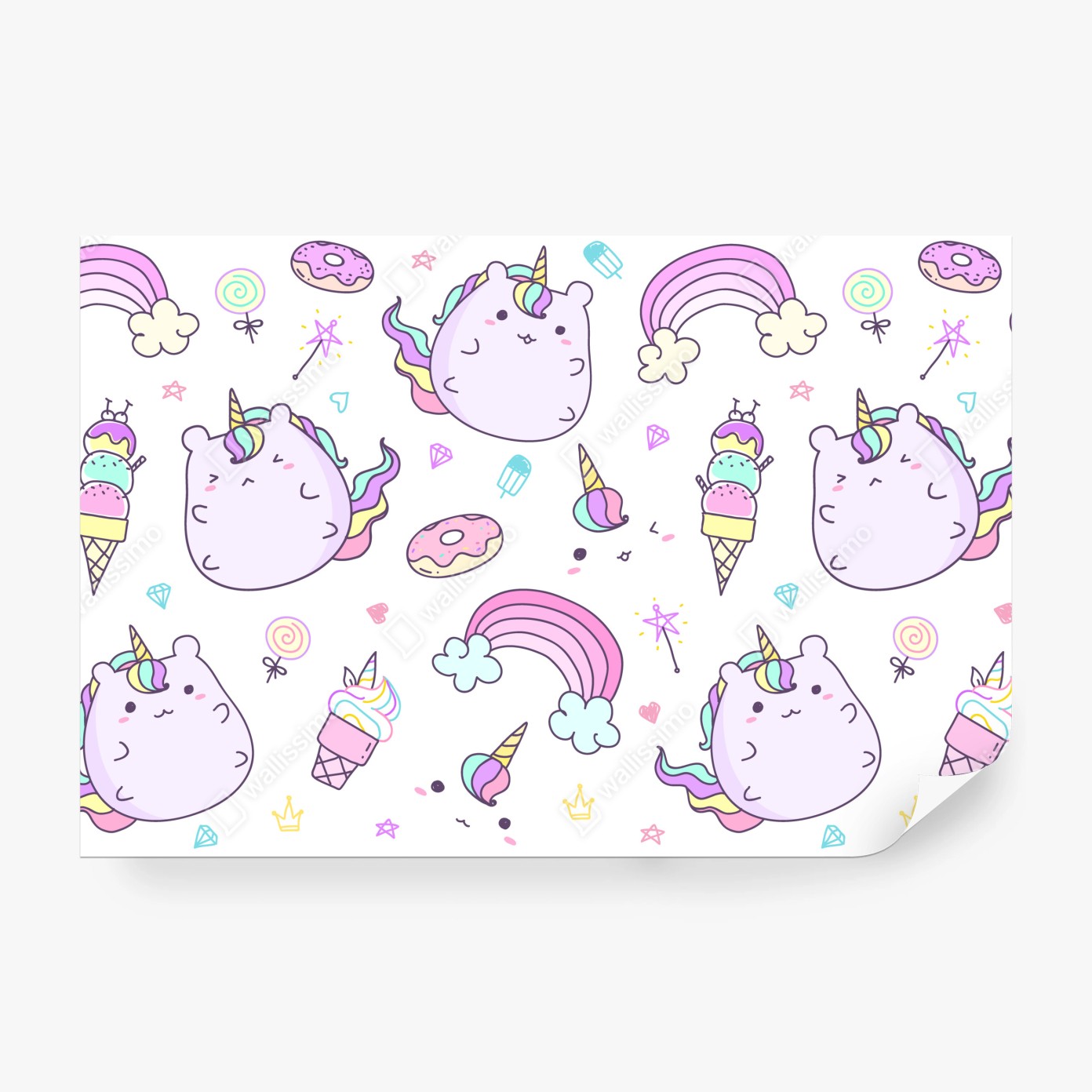 Fototapete Verspieltes pastell-einhorn-katzenmuster