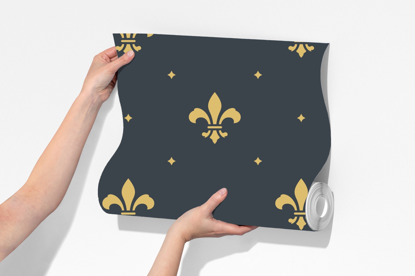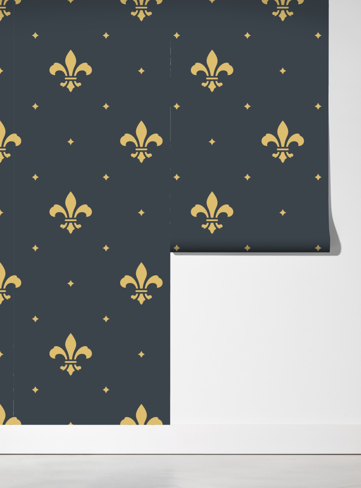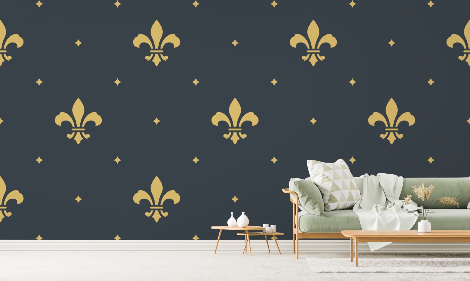 Elegante goldene Lilienmotive auf tiefem Schieferhintergrund verleihen klassischen Räumen eine zeitlose, königliche Ausstrahlung.
