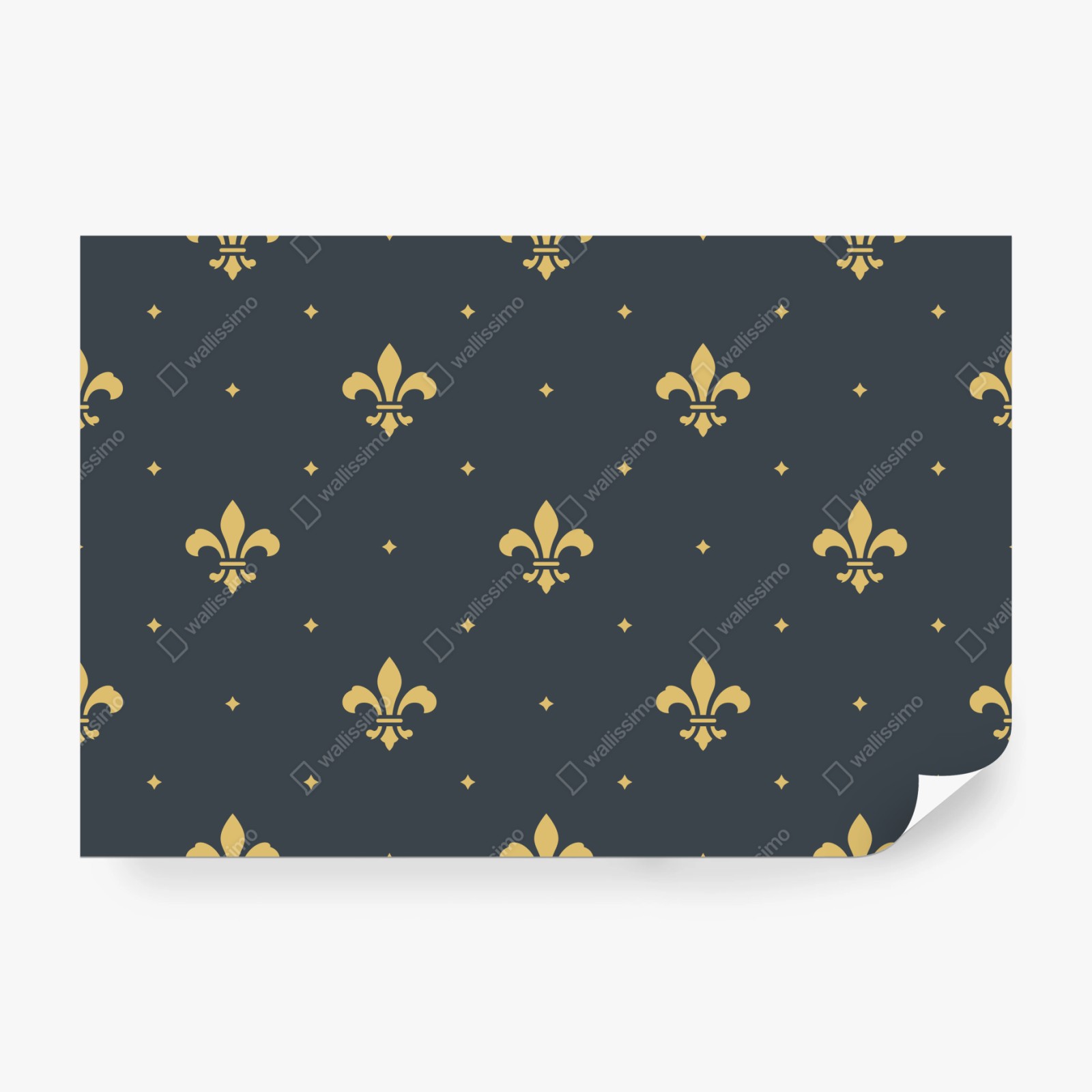 Fototapete Goldenes lilienmuster auf dunklem hintergrund