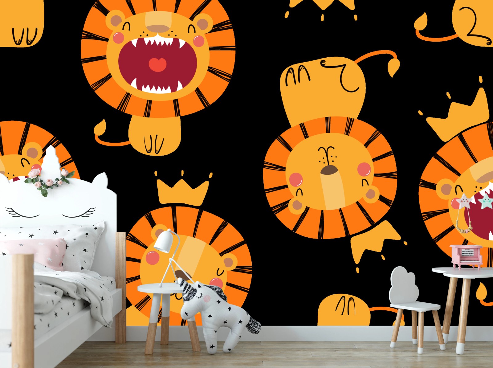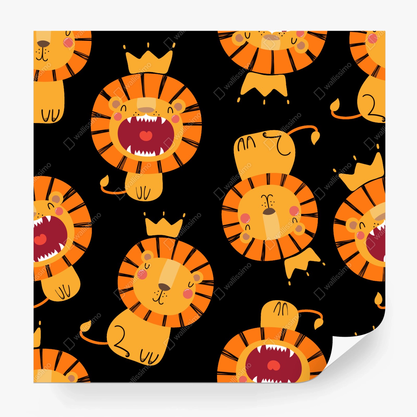 Fototapete Verspieltes löwenmuster auf schwarzem hintergrund