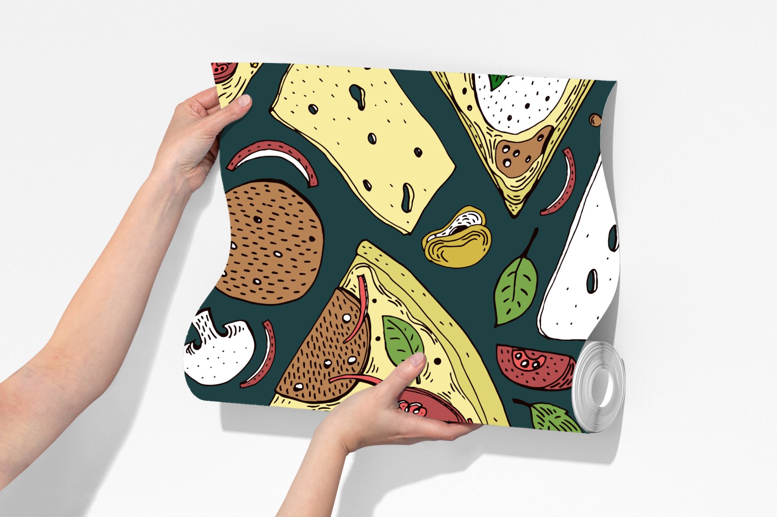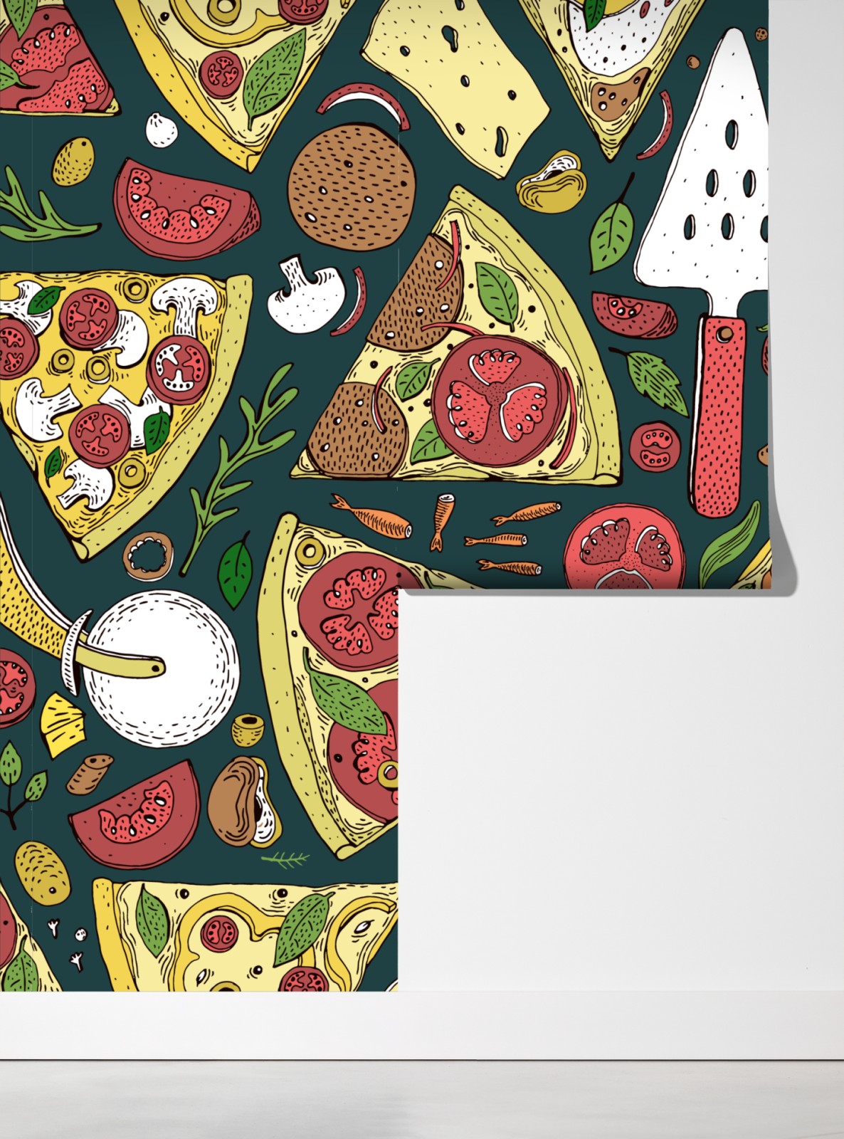 Fototapete buntes muster mit pizzastücken – Wallnifity®