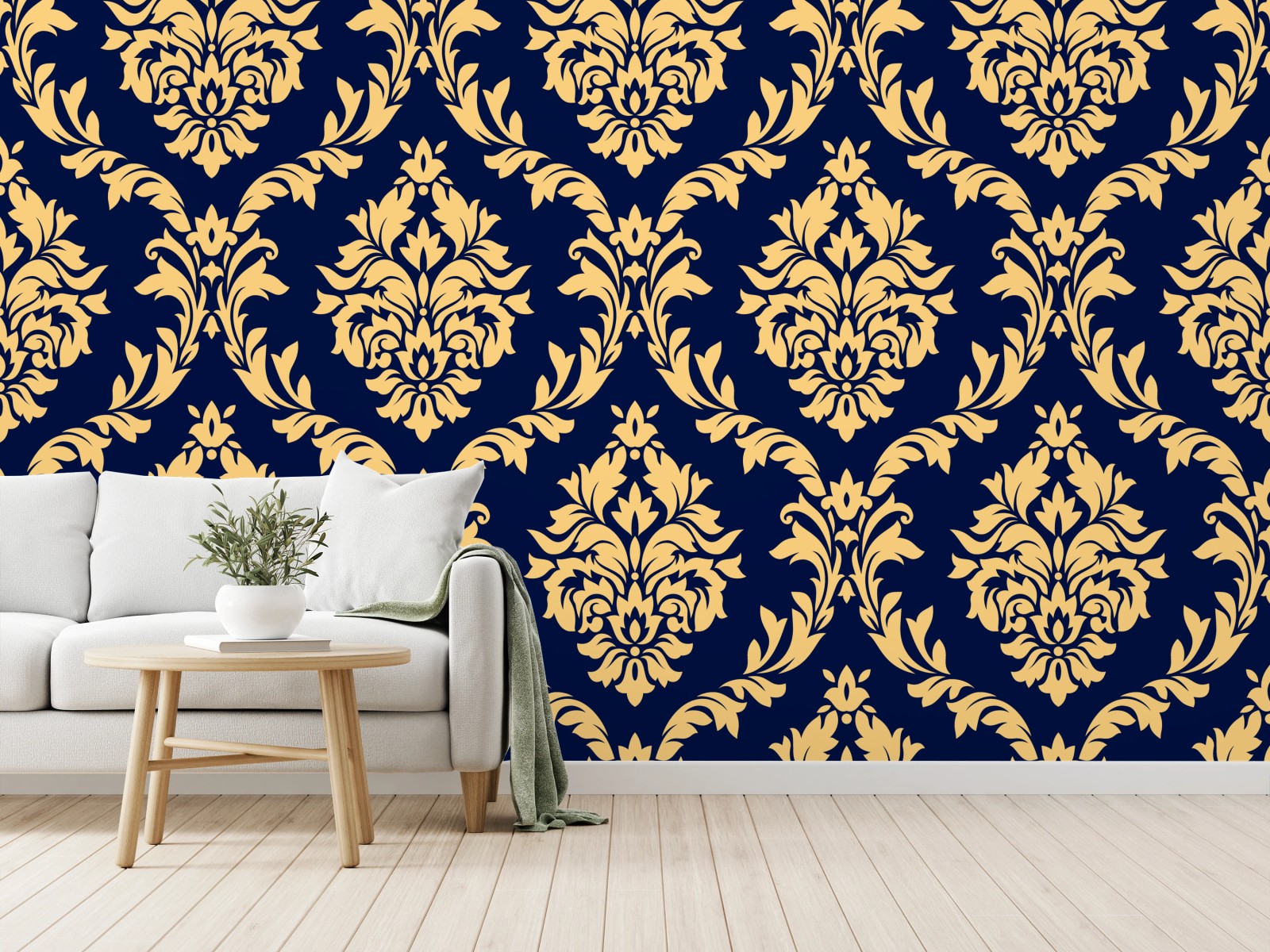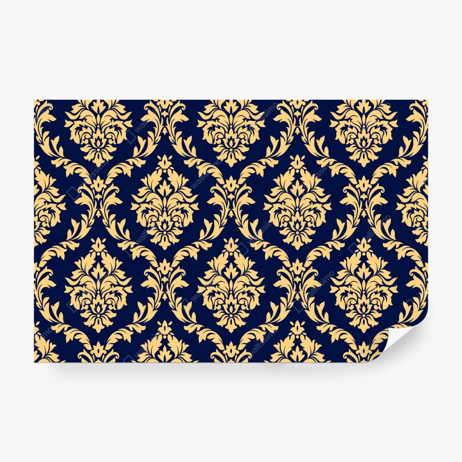 Fototapete Elegantes goldenes damastmuster auf tiefblauem hintergrund