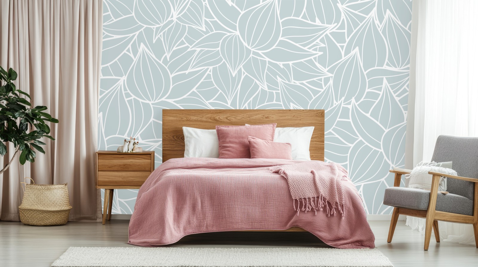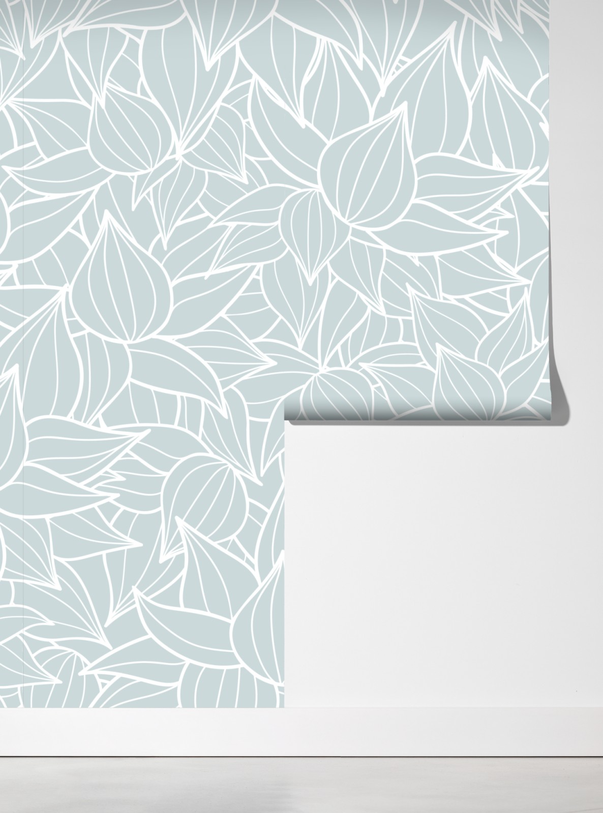 Fototapete zartes türkis blättermuster – Wallnifity®