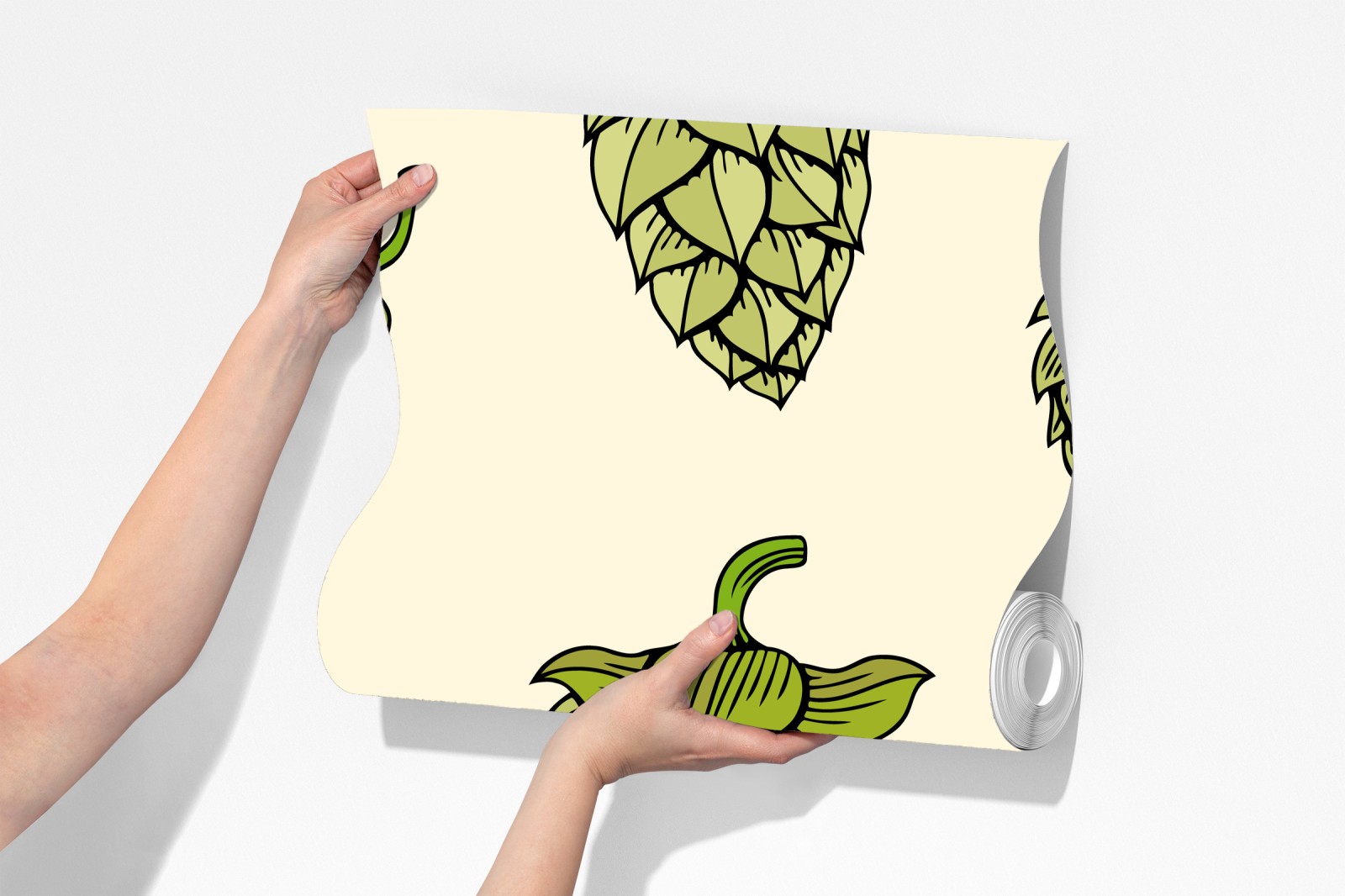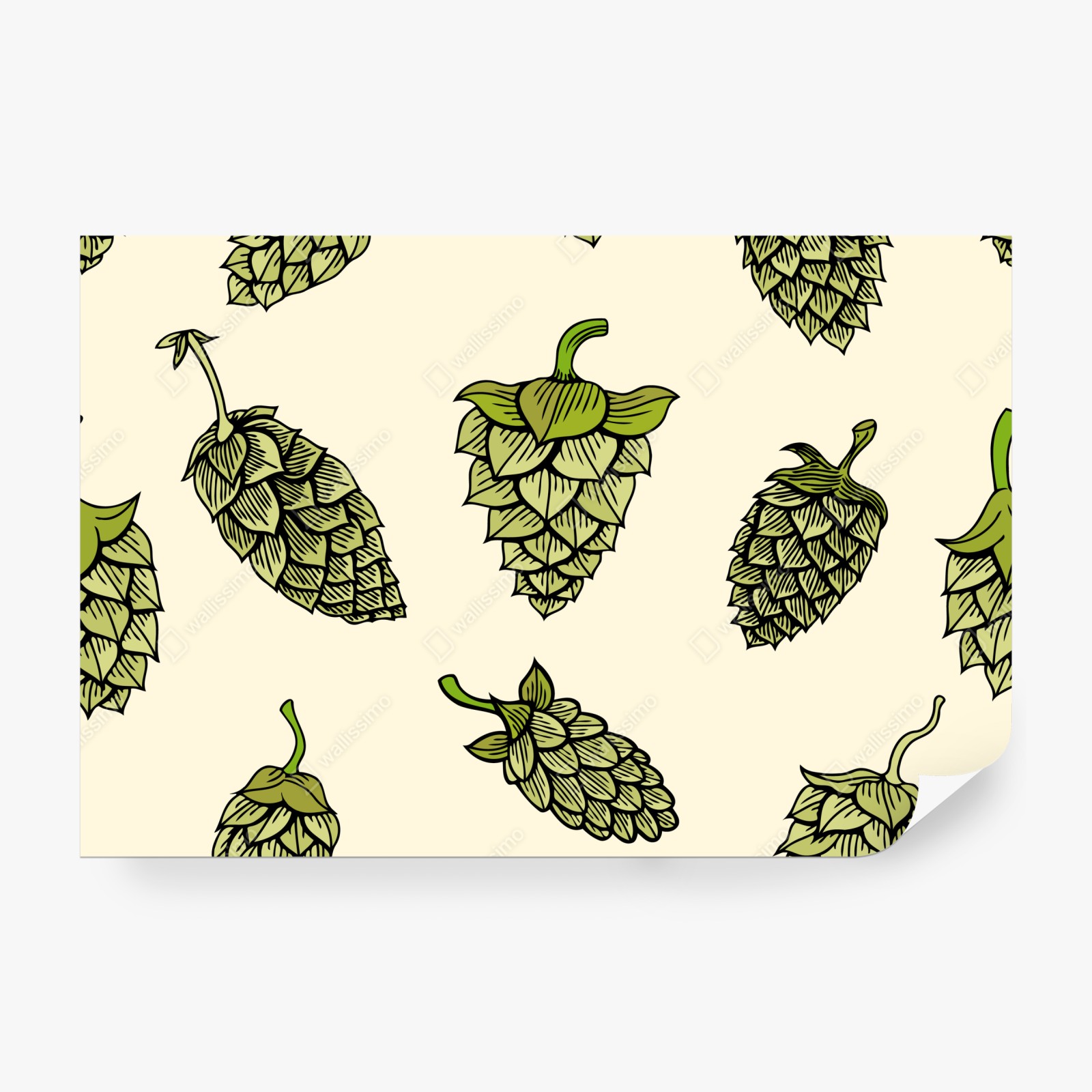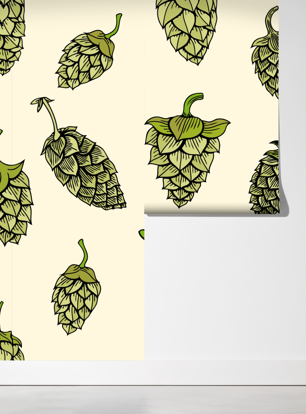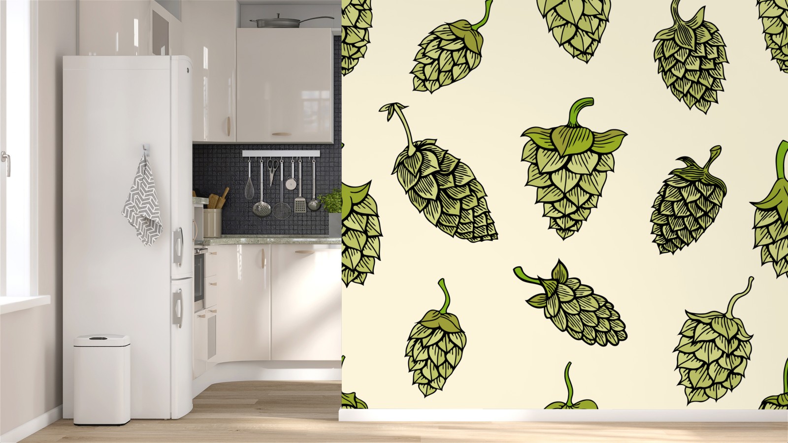 Dekoratives, handgezeichnetes Hopfenmuster verleiht Küche und Esszimmer rustikalen, botanischen Charme und ist ideal für Bierliebhaber.