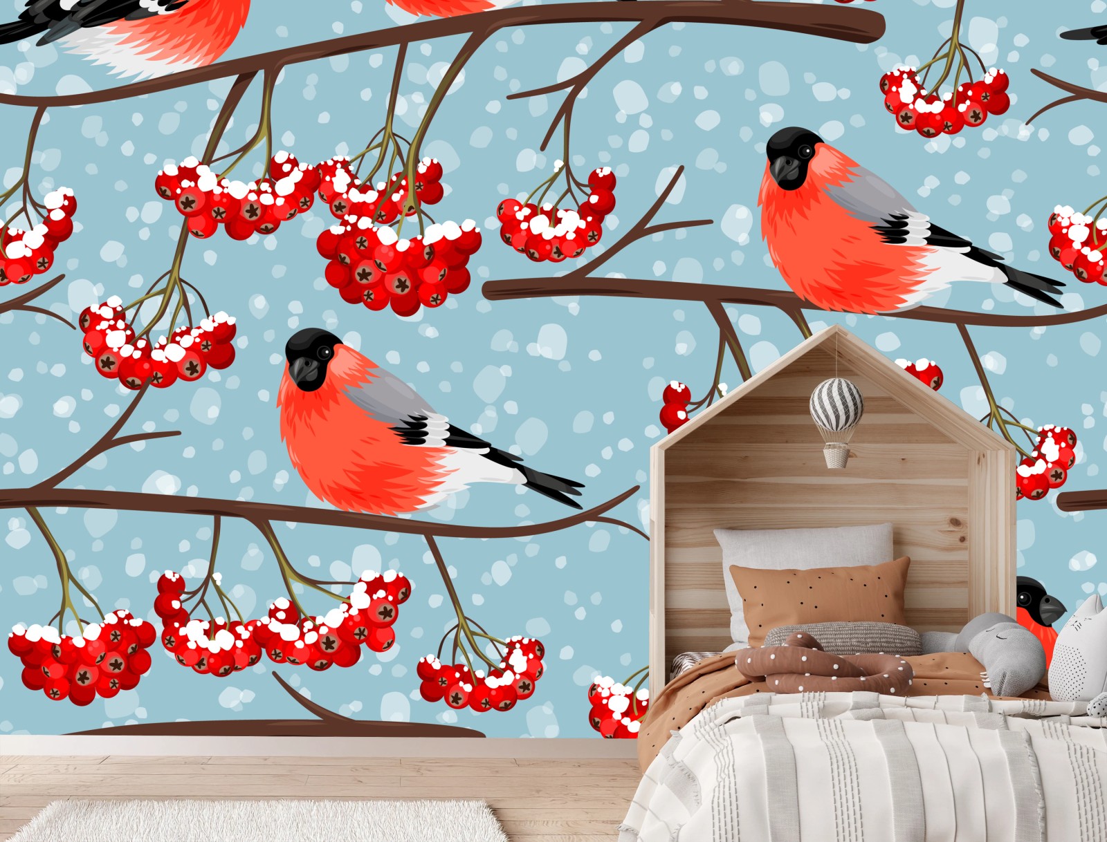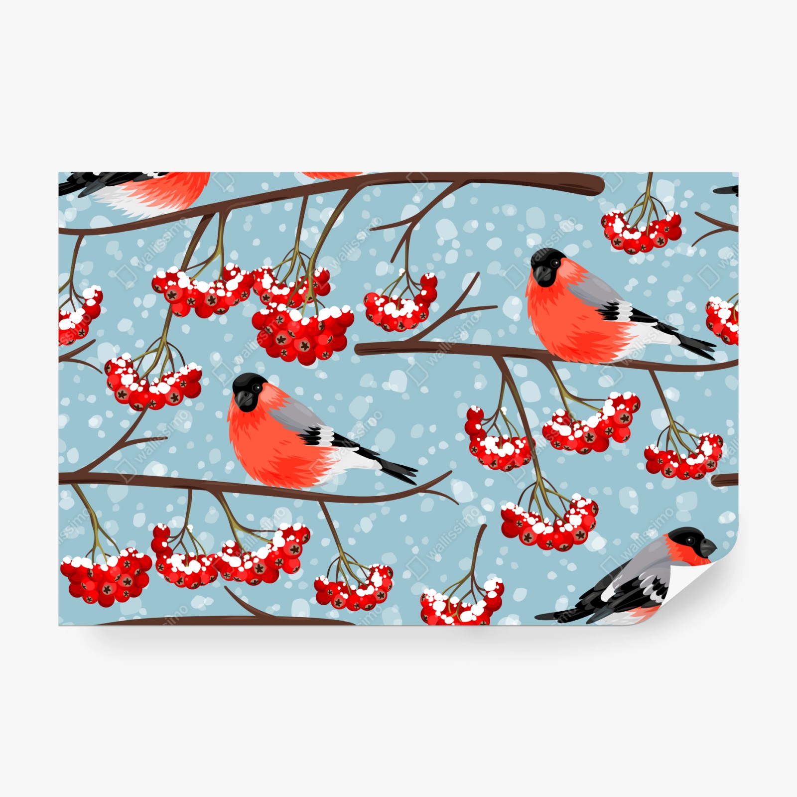 Fototapete Winterliche gimpel und vogelbeeren - muster