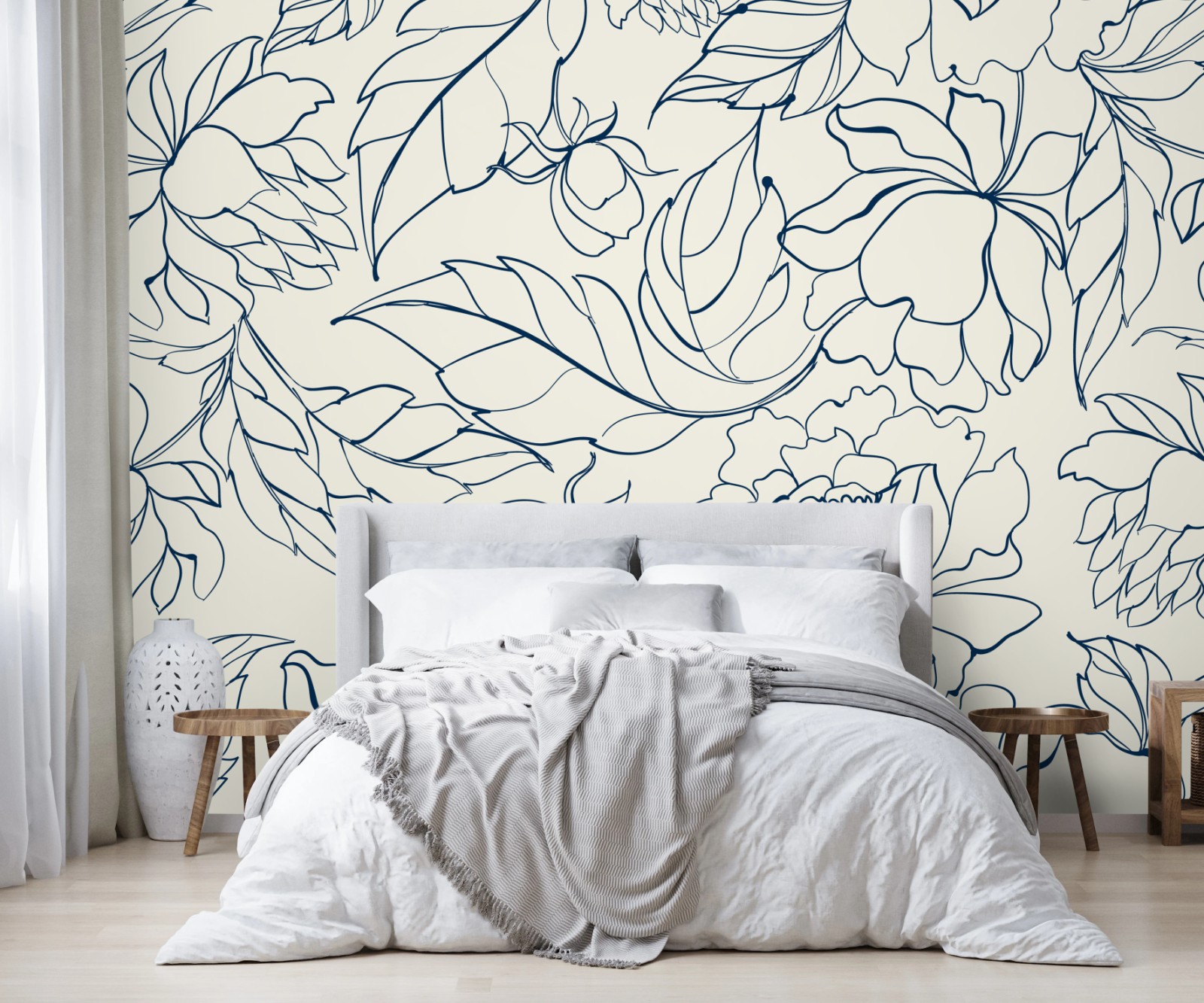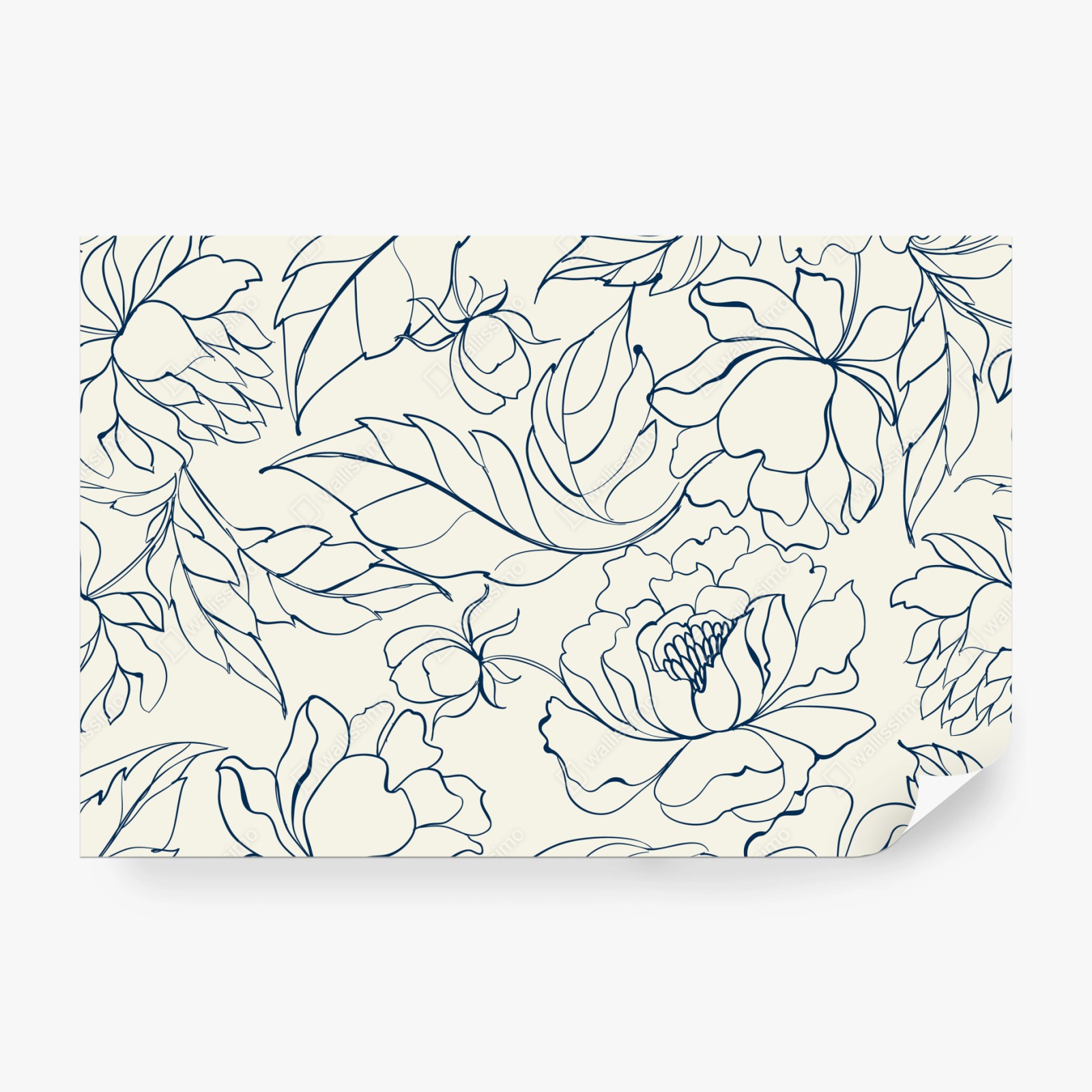 Fototapete Handgezeichnetes marineblaues blumenmuster auf creme
