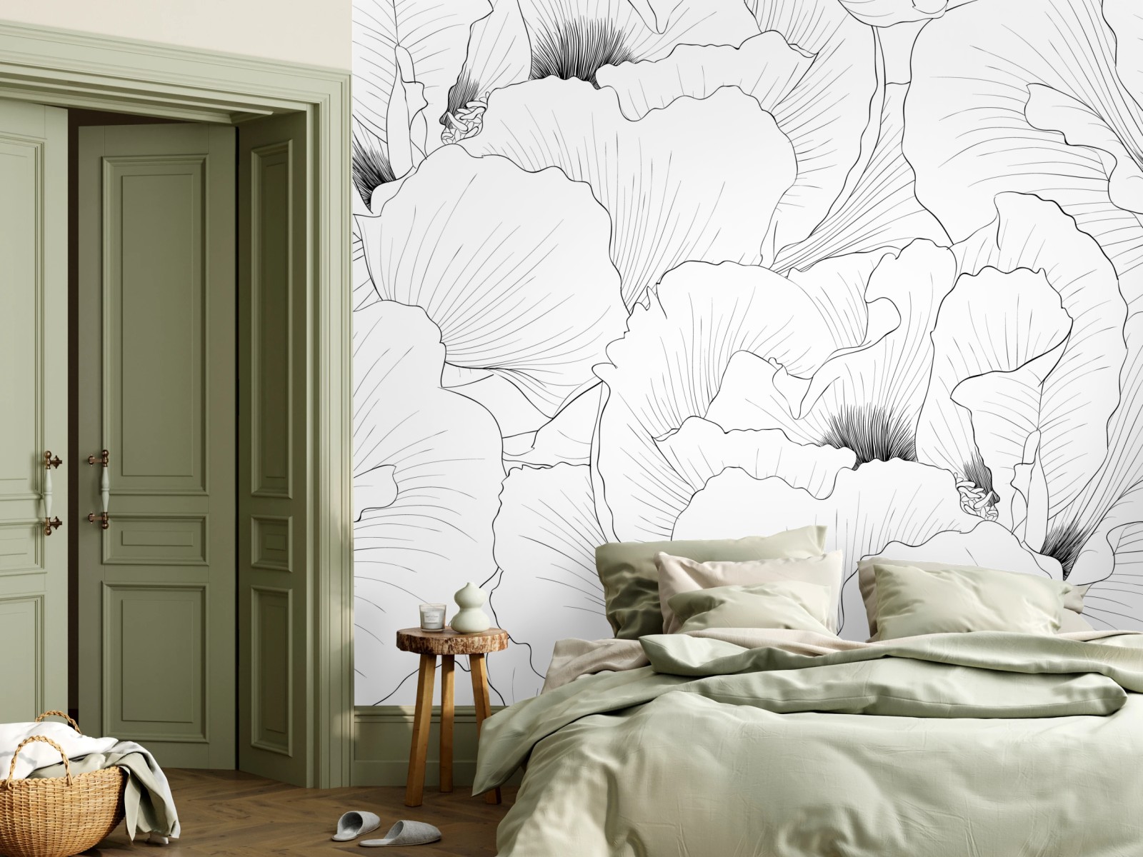 Fototapete Feine botanische linienzeichnung mit blumen