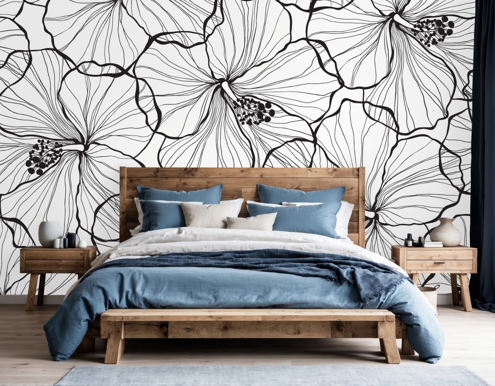 Fototapete Schwarzweißes hibiskus line art muster