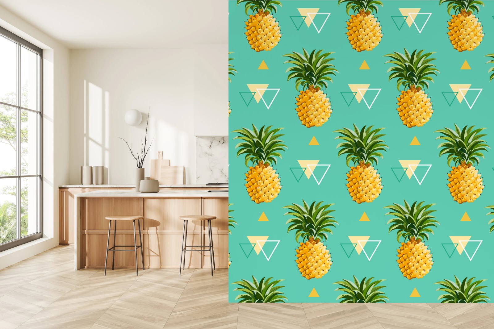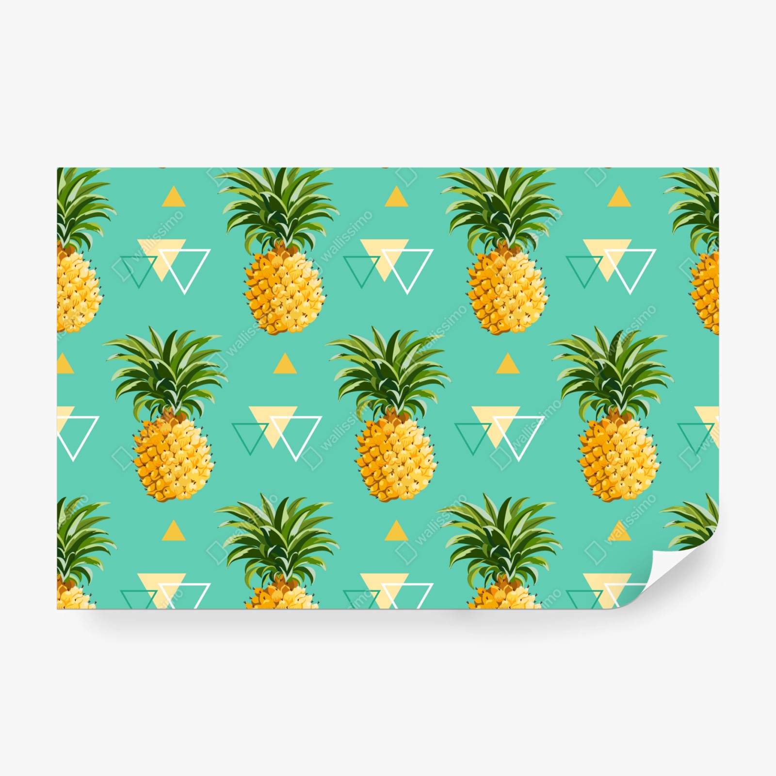 Fototapete Tropisches ananasmuster auf türkisfarbenem hintergrund