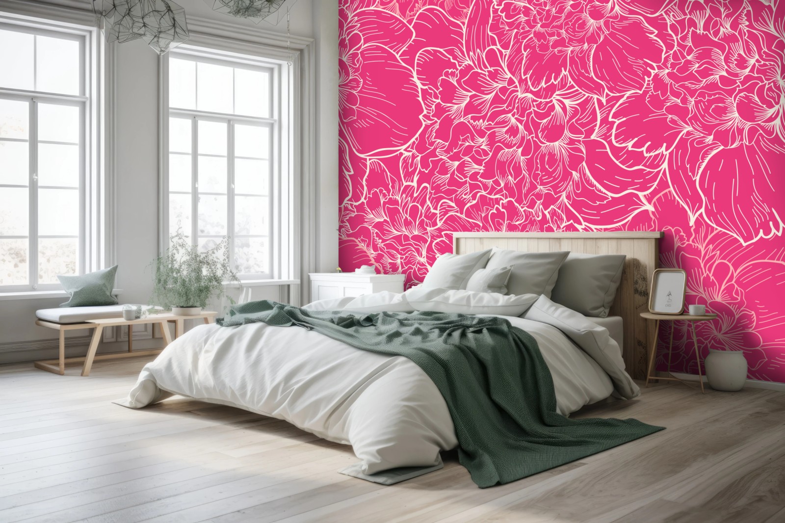 kräftiges rosa blumenmuster mit zarten cremefarbigen linien verleiht ihrem interieur eine lebendige, feminine note.MehrWeniger