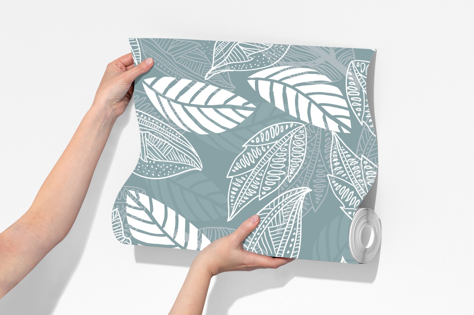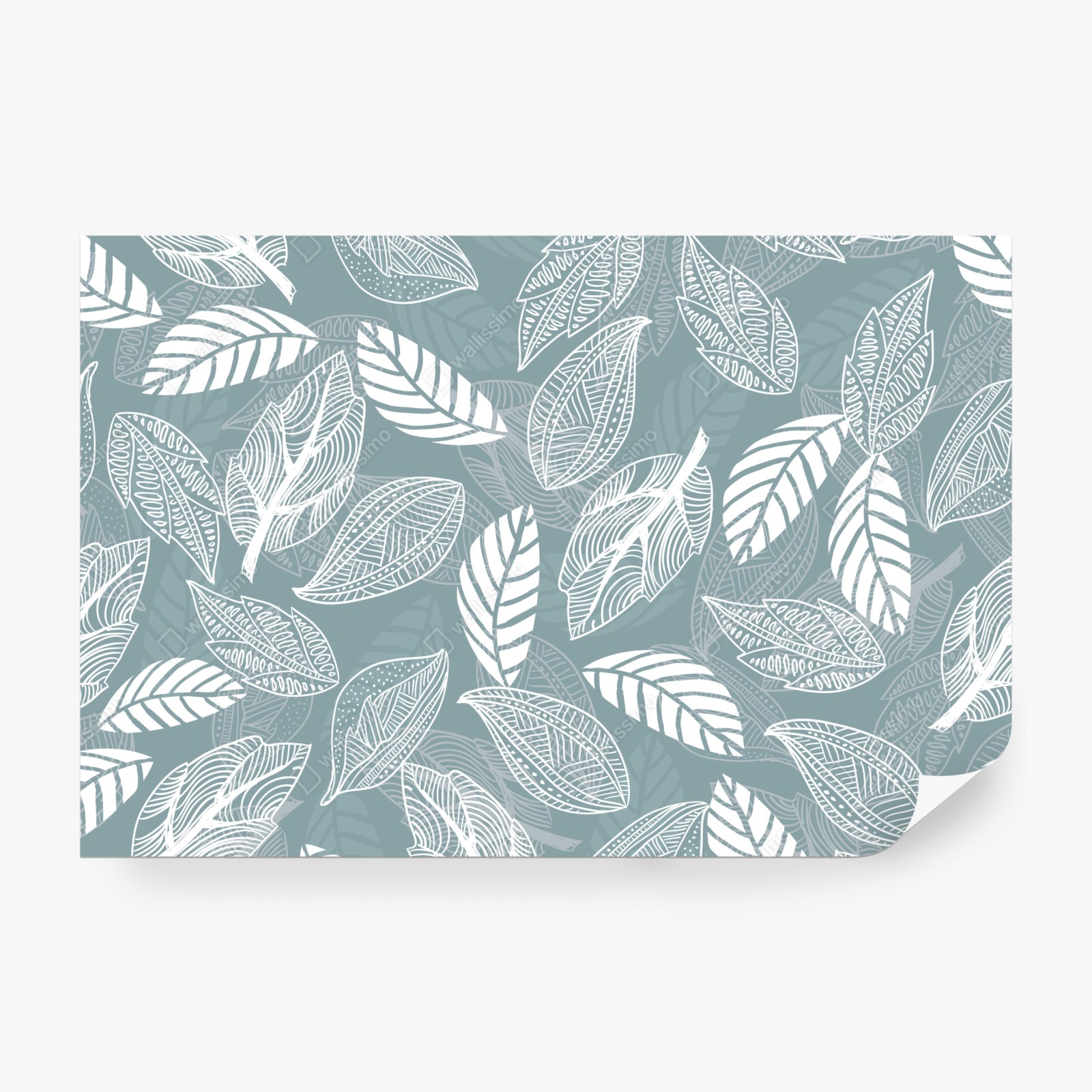 Fototapete handgezeichnetes blättermuster auf türkisfarbenem hintergrund – Wallnifity®