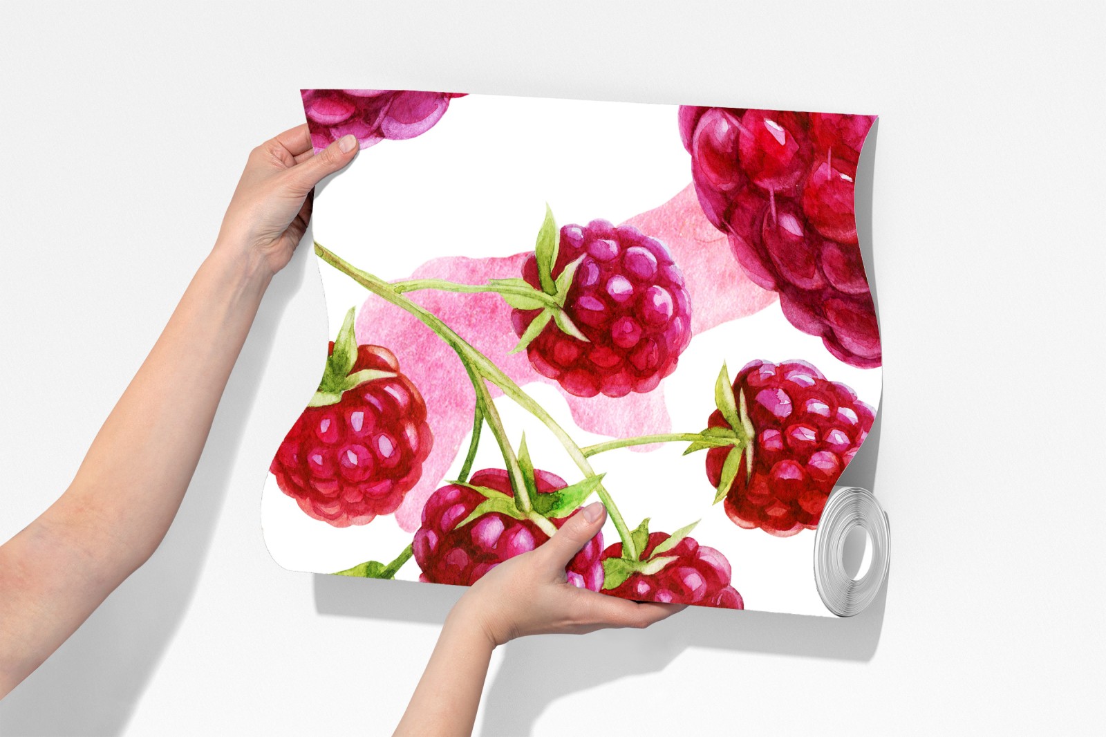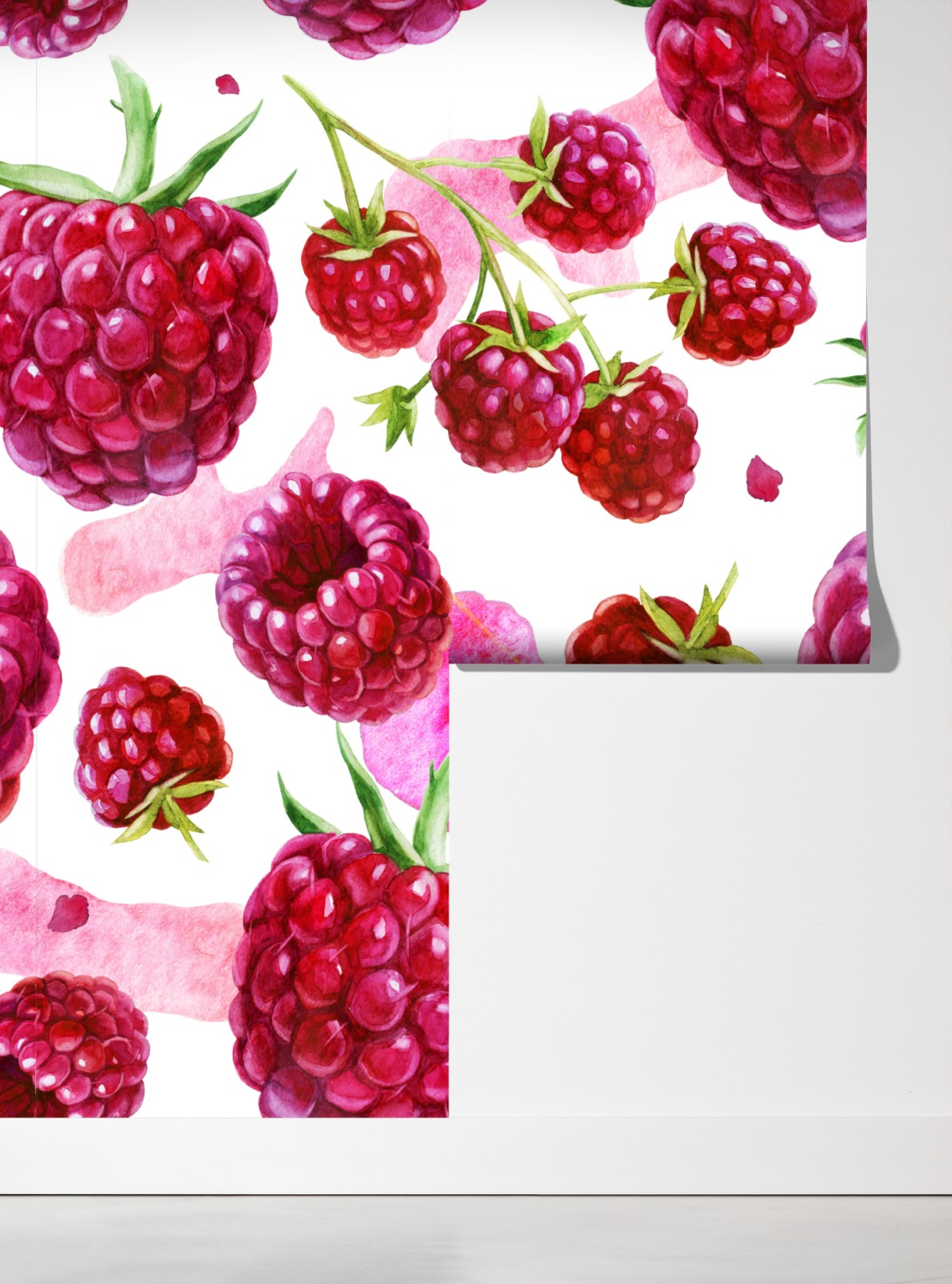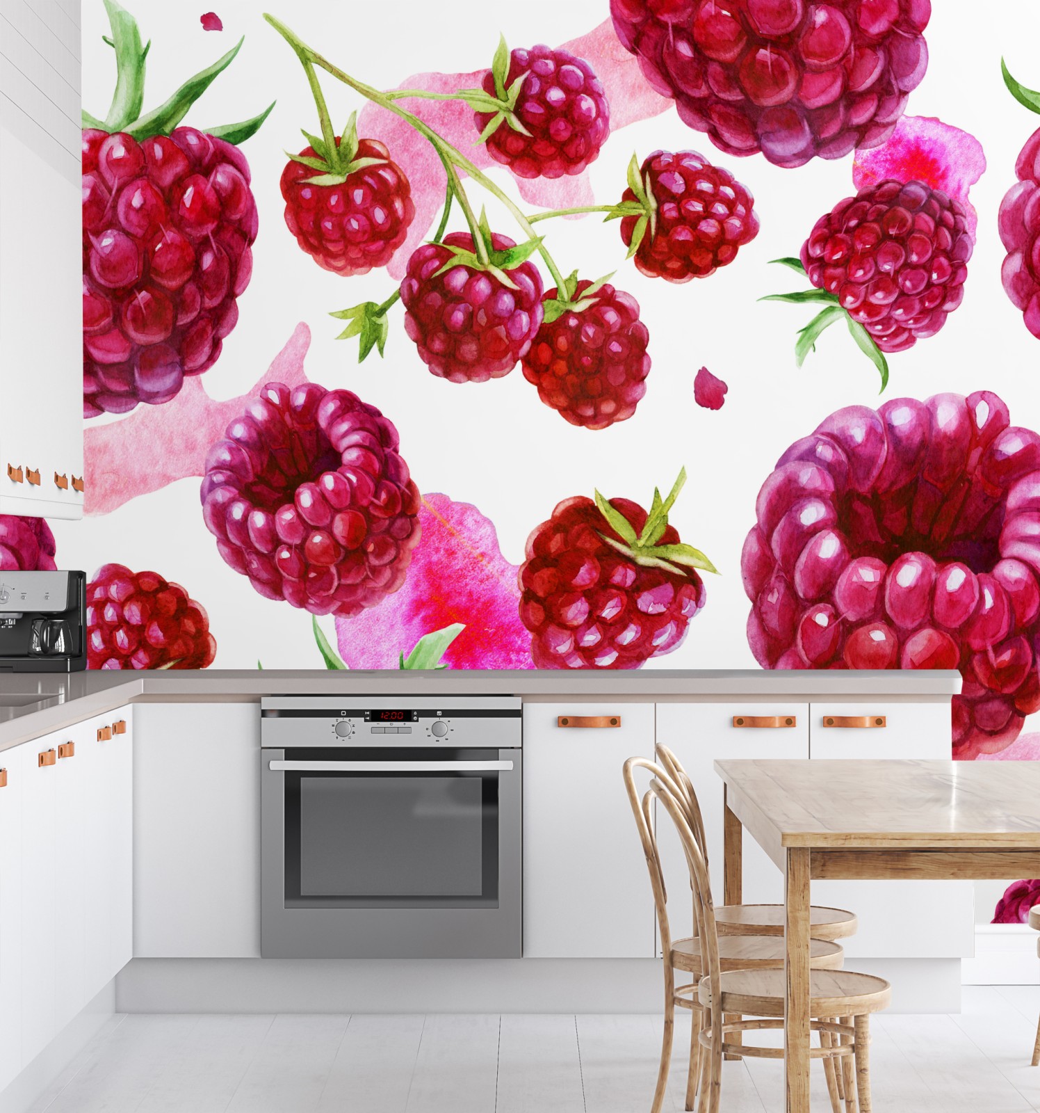 lebhafte aquarell himbeeren bilden ein frisches, verspieltes muster, das küche und esszimmer aufhellt.