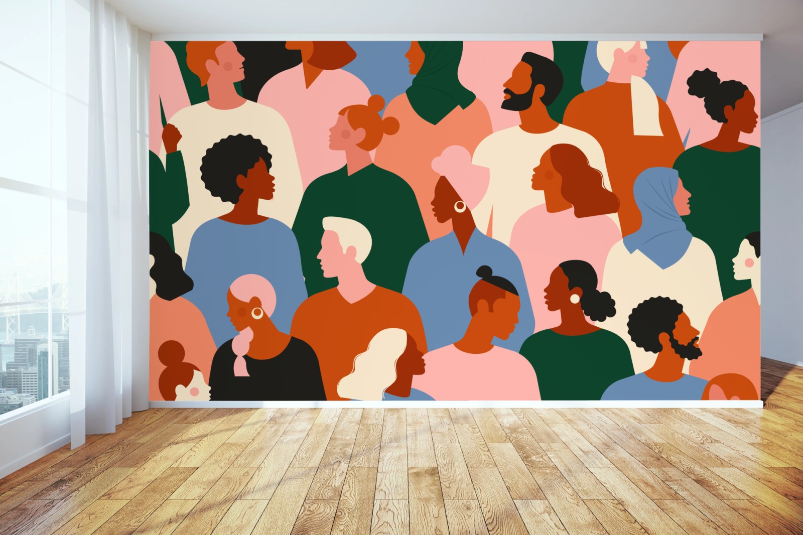 Fototapete Muster mit porträts einer vielfältigen gemeinschaft