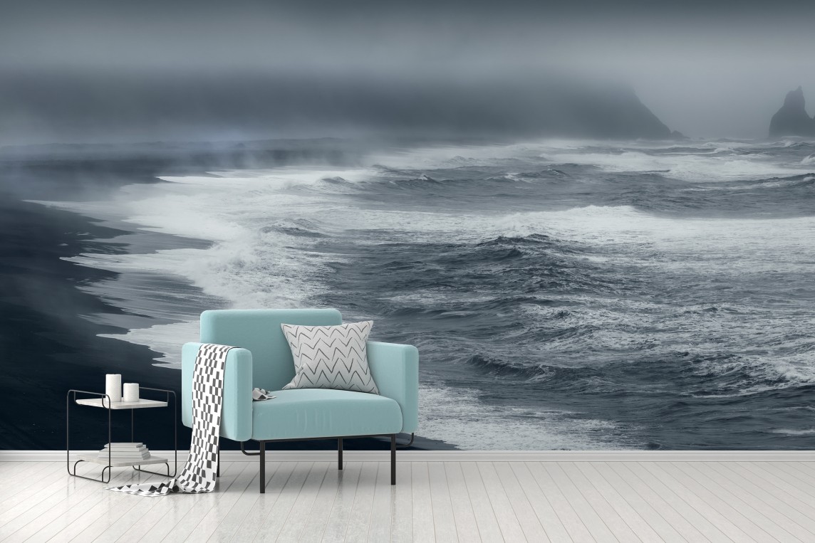 Fototapete Stürmische küste von Island panorama