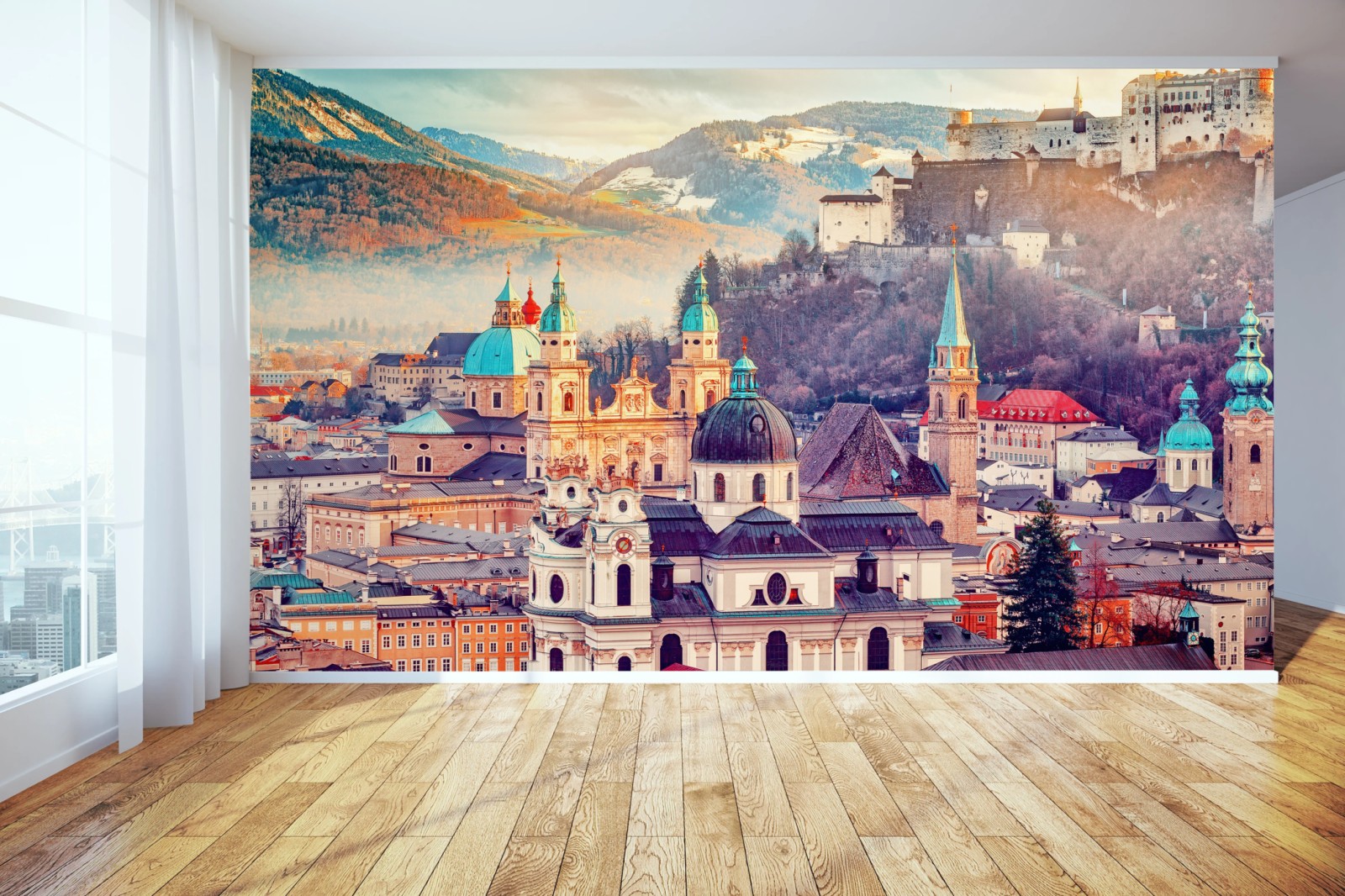 Fototapete Sonnenuntergang über Salzburgs skyline