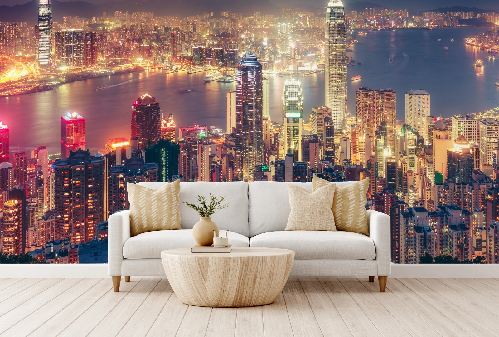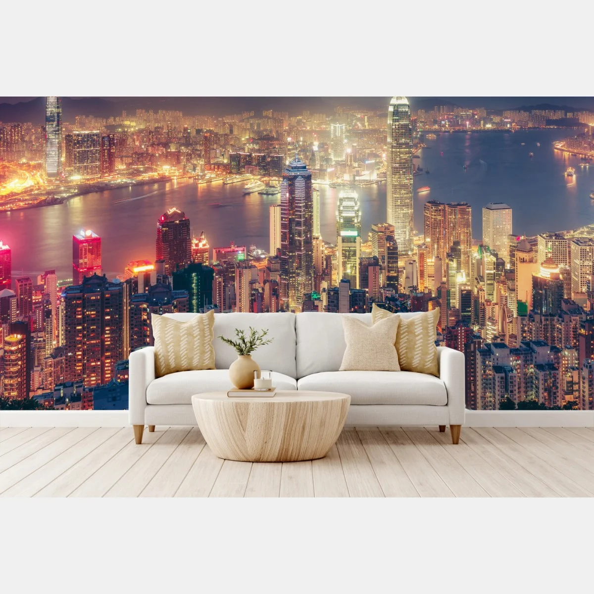 Fototapete Hongkong skyline bei nacht vom Victoria Peak