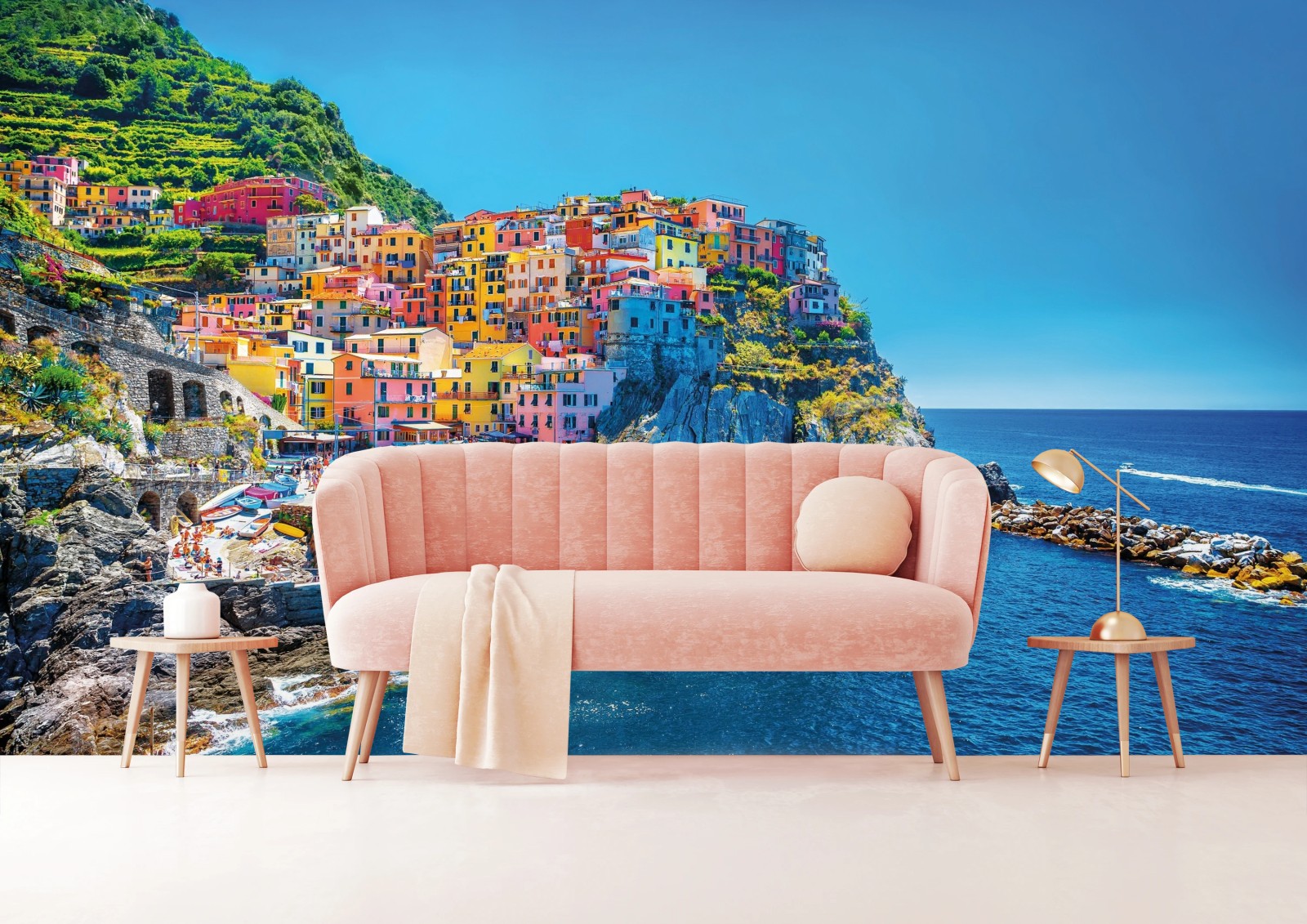 Fototapete Buntes mediterranes kliffdorf am meer