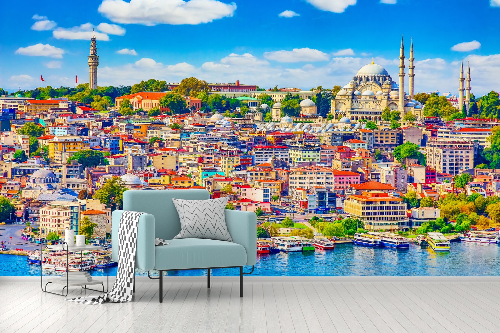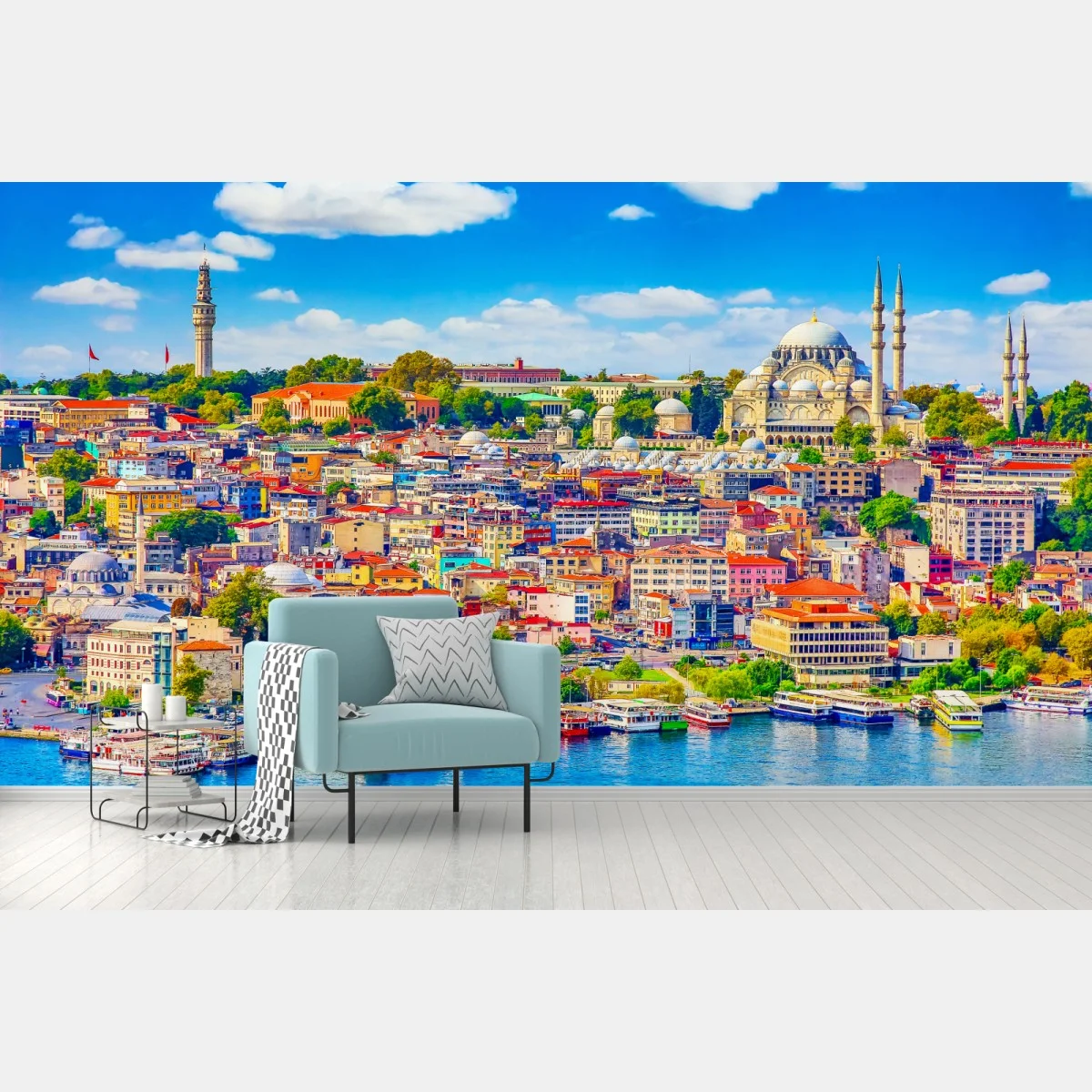 Fototapete Lebendige Skyline von Istanbul über dem Bosporus
