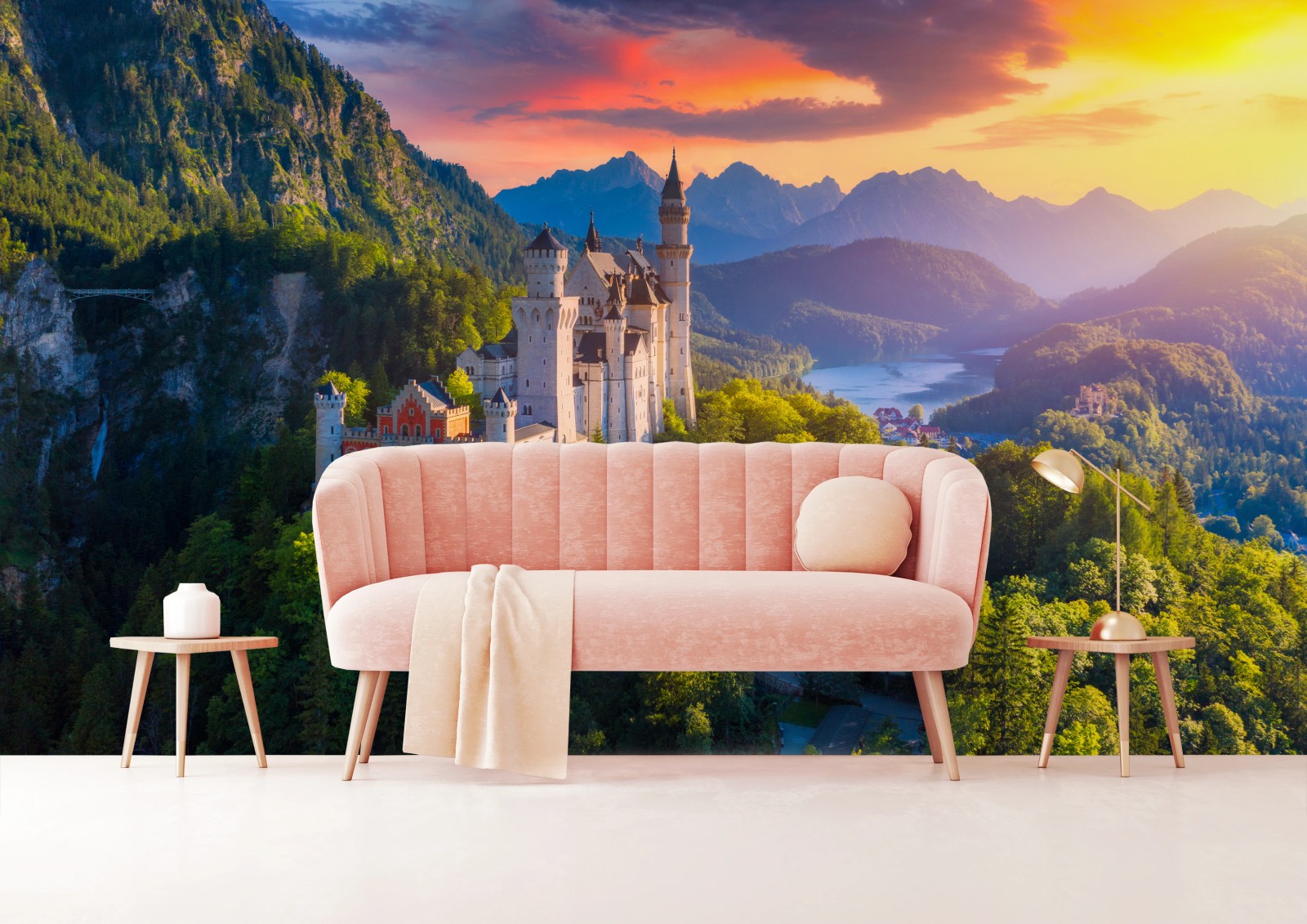 Fototapete Schloss Neuschwanstein bei sonnenuntergang