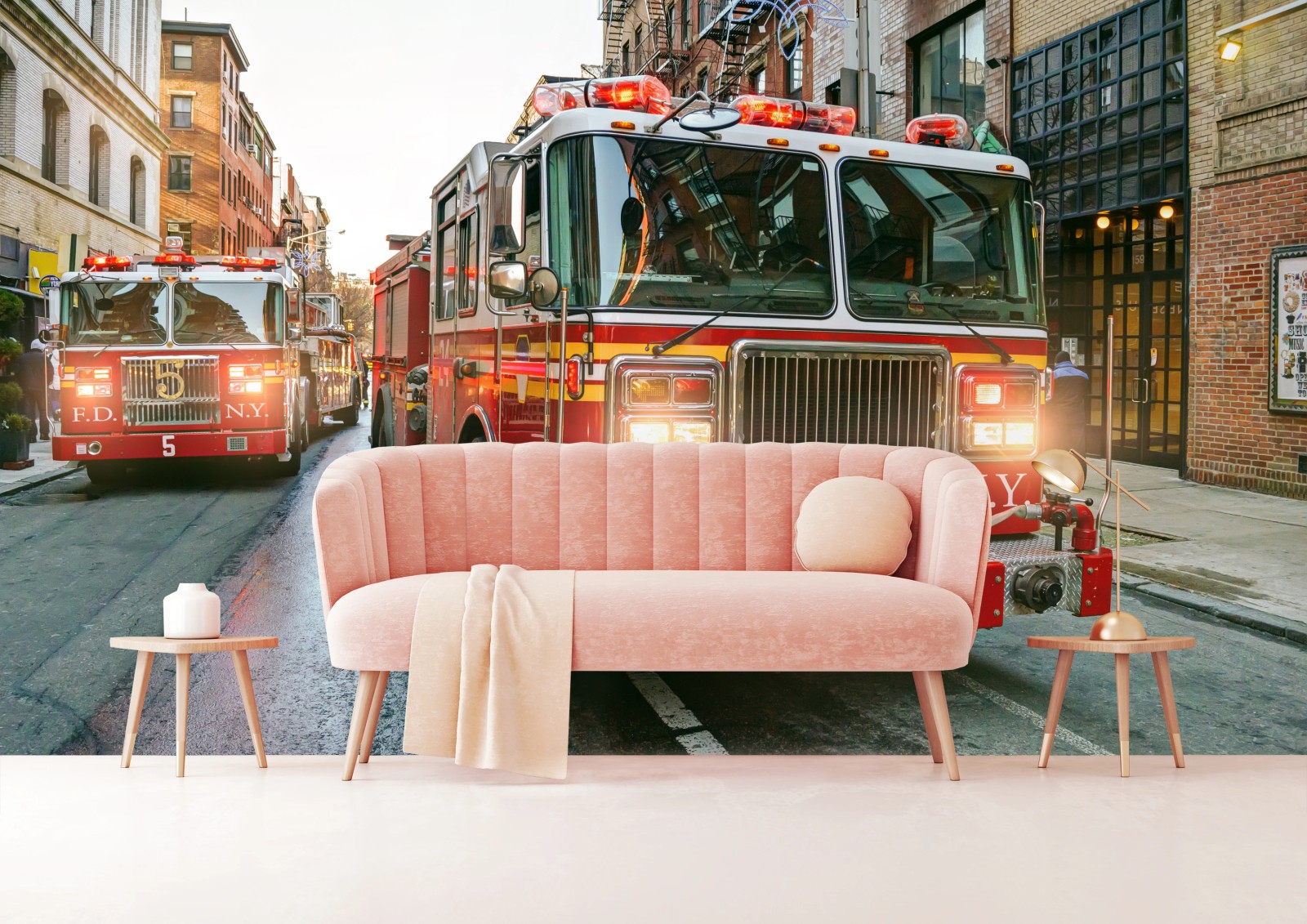Fototapete Feuerwehrautos auf einer straße in Manhattan, New York