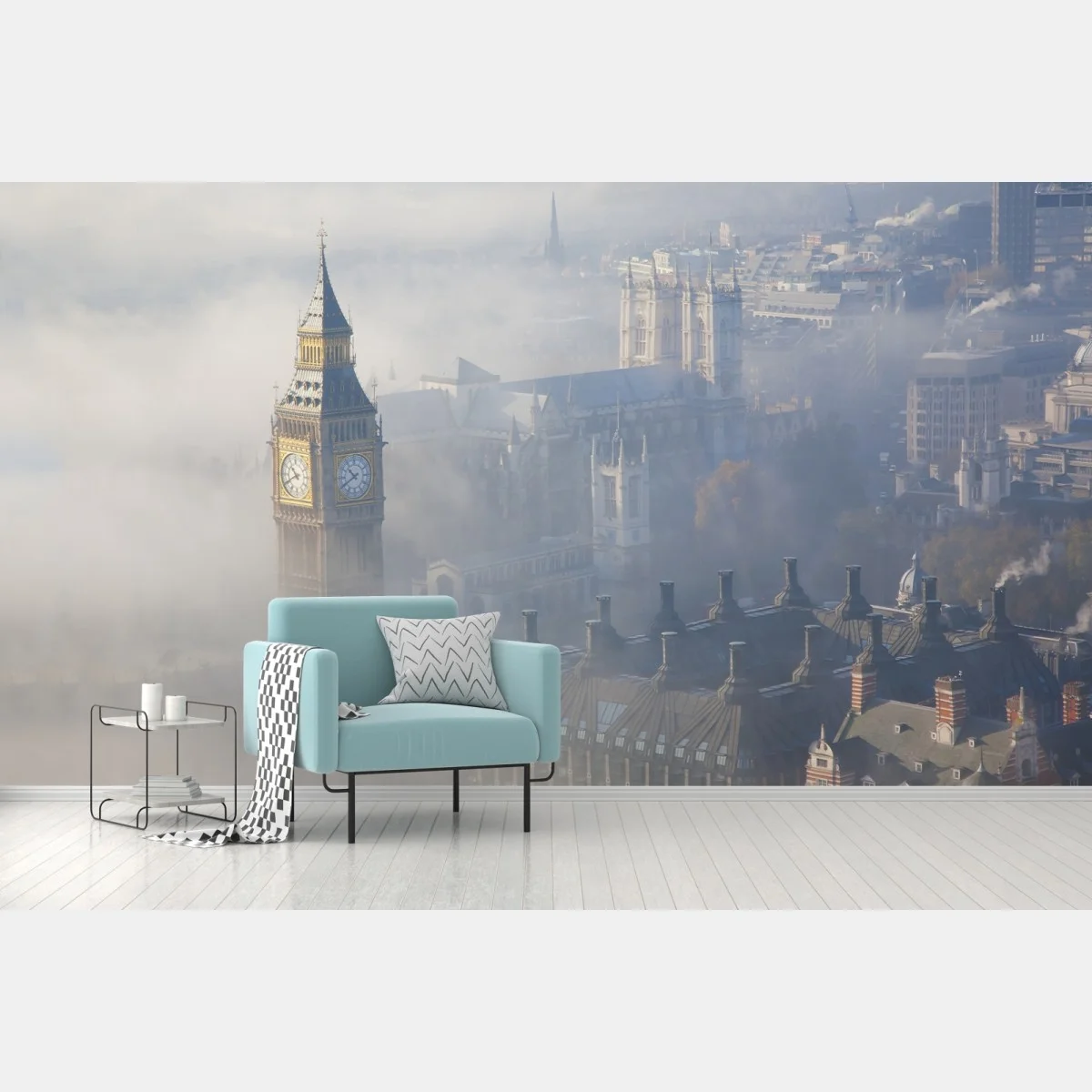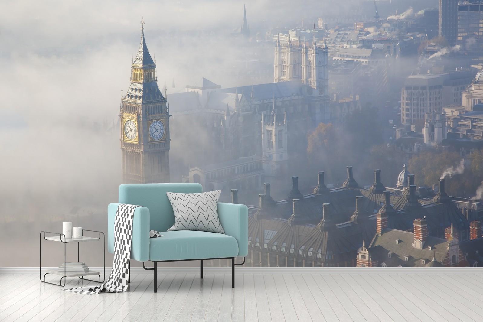 Fototapete Neblige luftaufnahme von Big Ben und Palace of Westminster