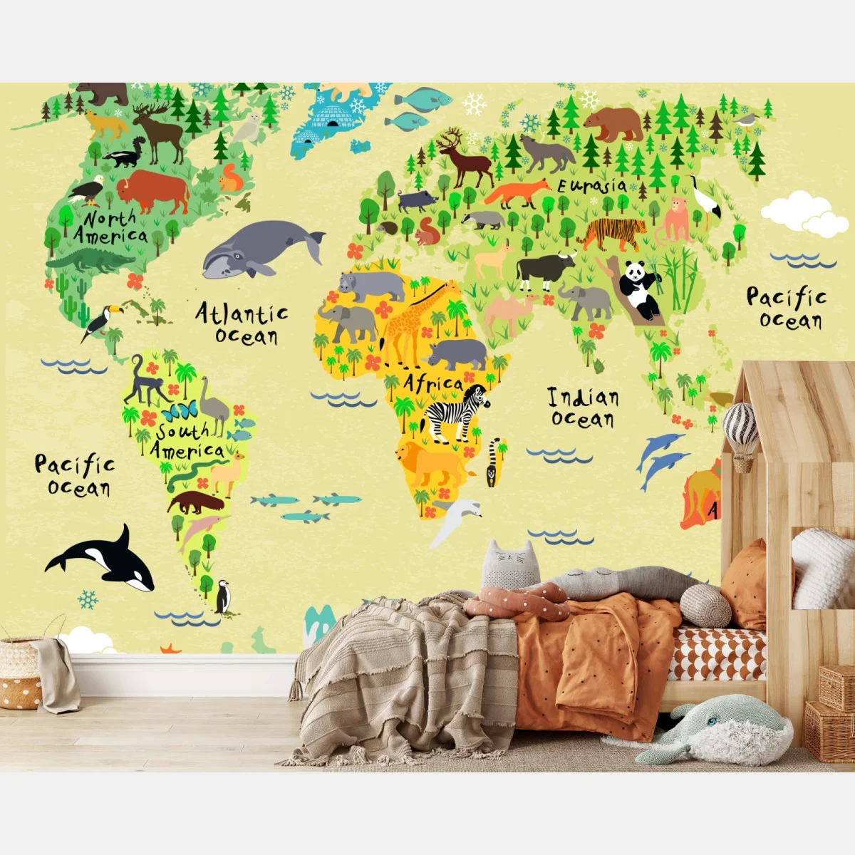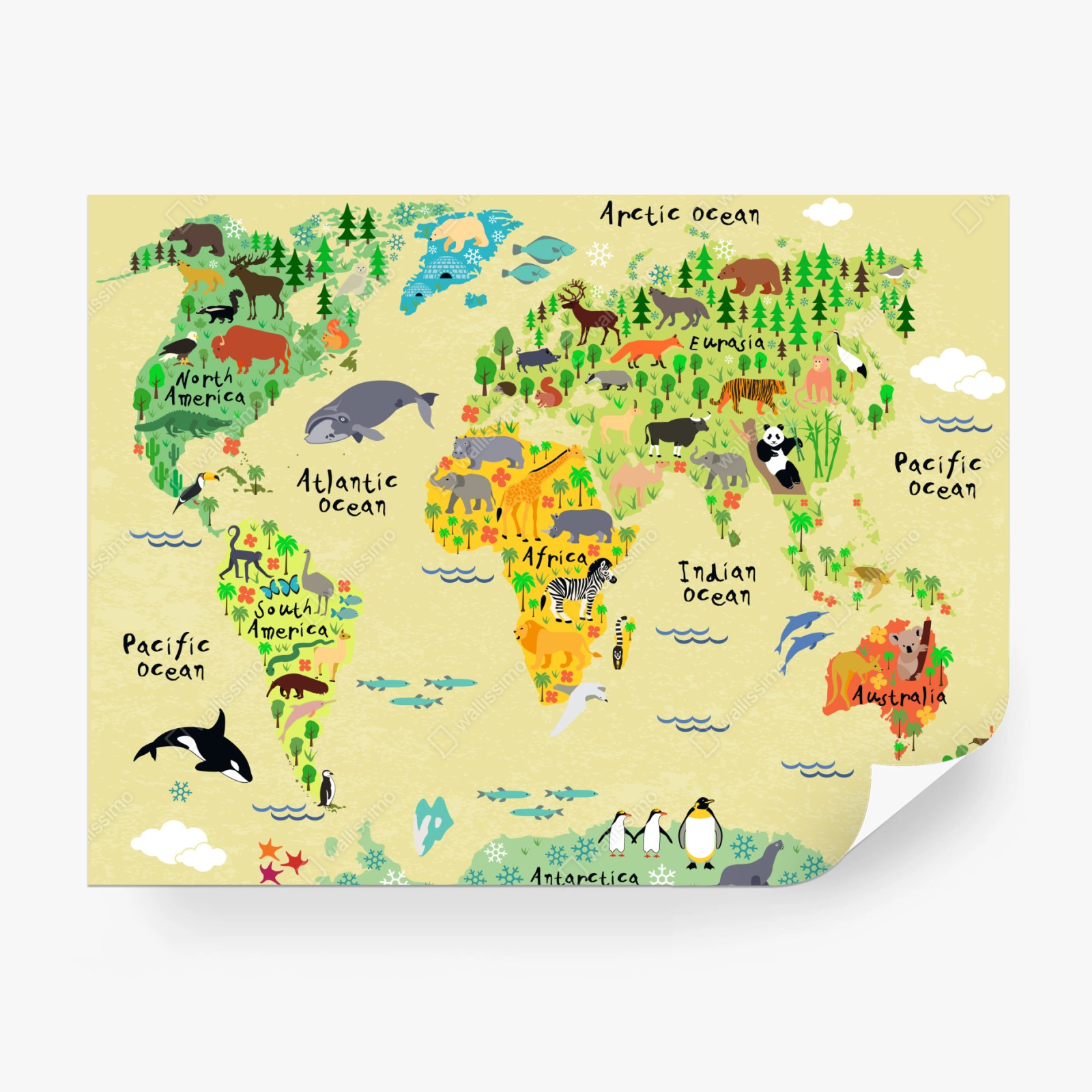 Fototapete Bunte weltkarte mit tieren