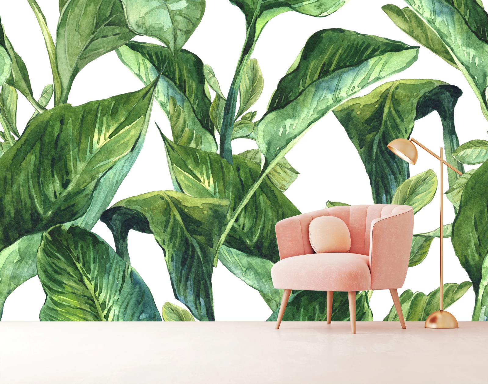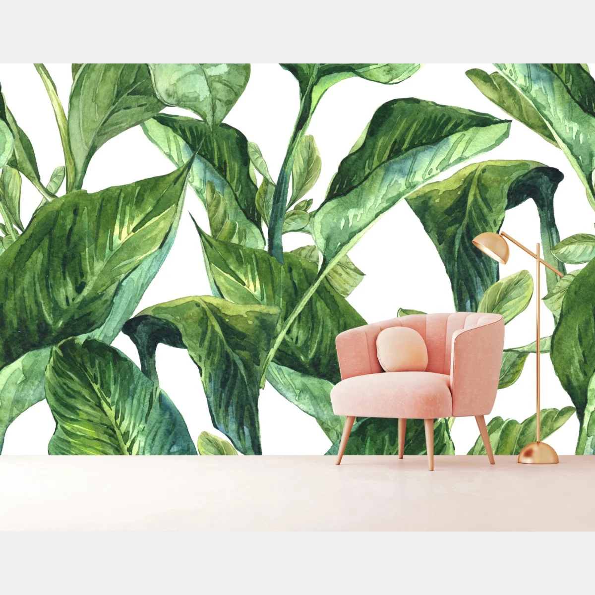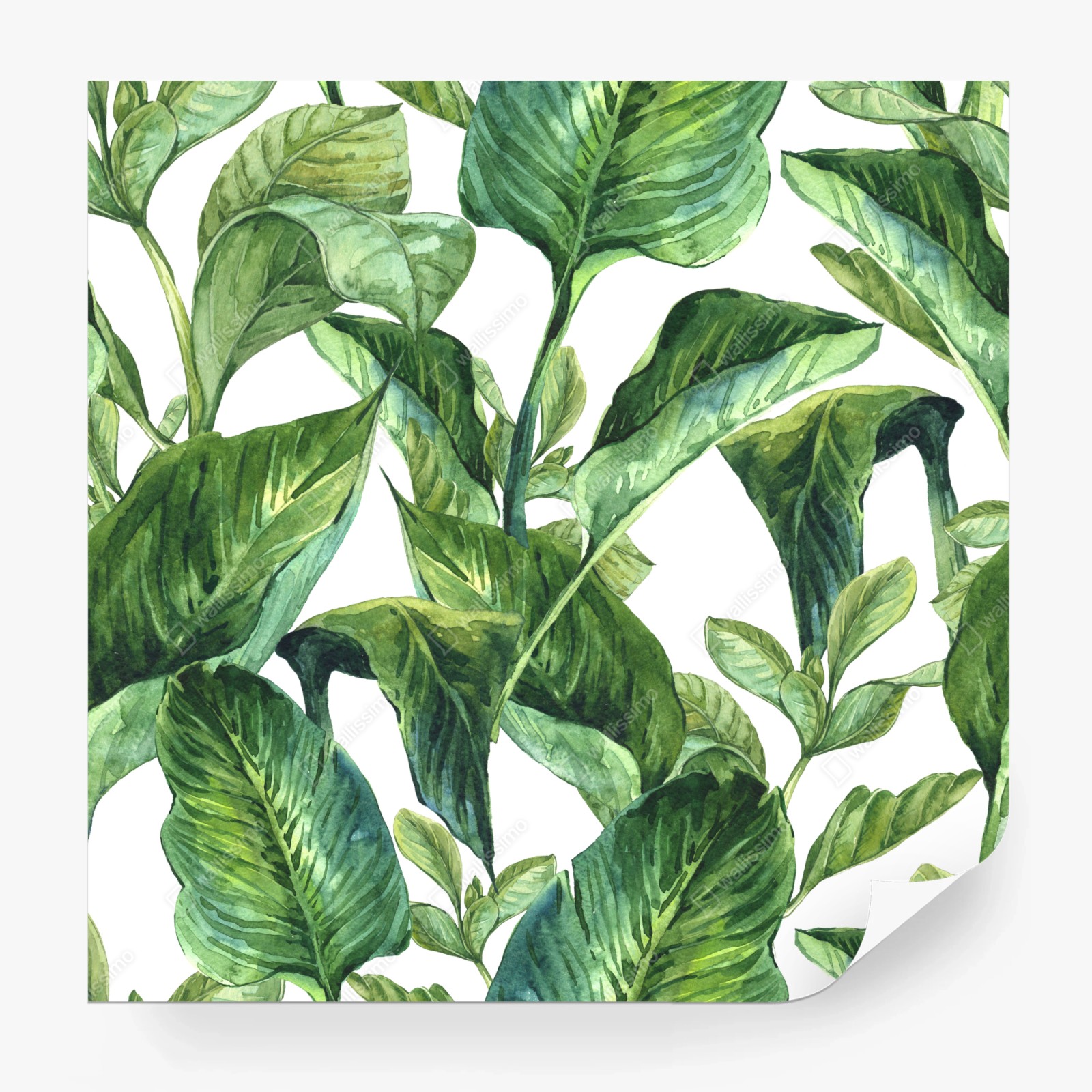 Bringen Sie beruhigende tropische Grünakzente in Ihr Zuhause mit diesem üppigen Aquarell-Blättermotiv, ideal um eine frische, pflanzennahe Atmosphäre zu schaffen.MehrWeniger