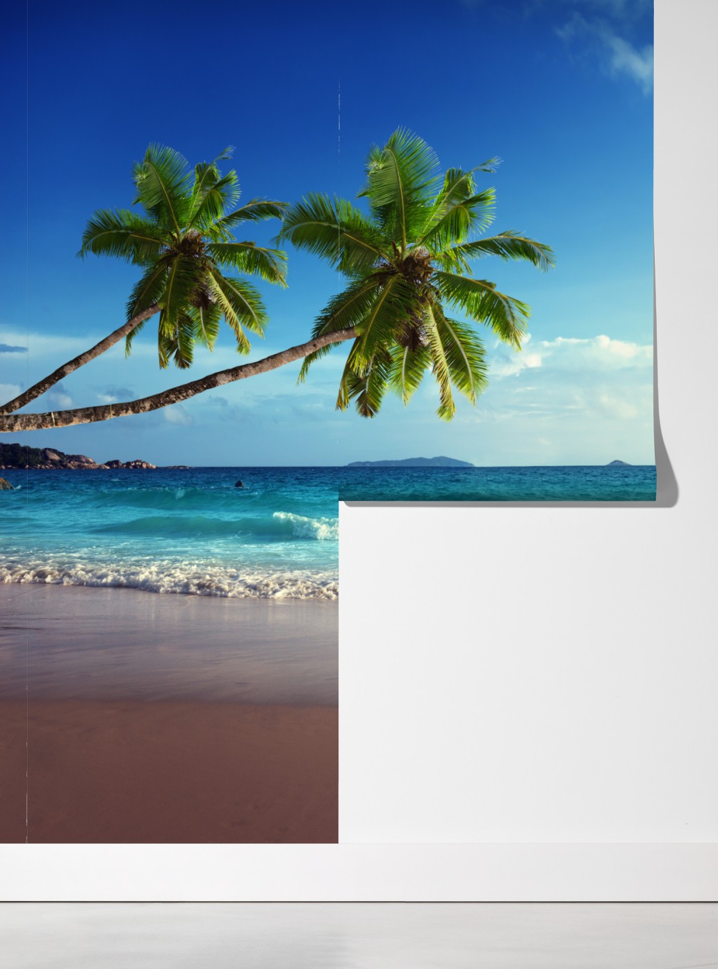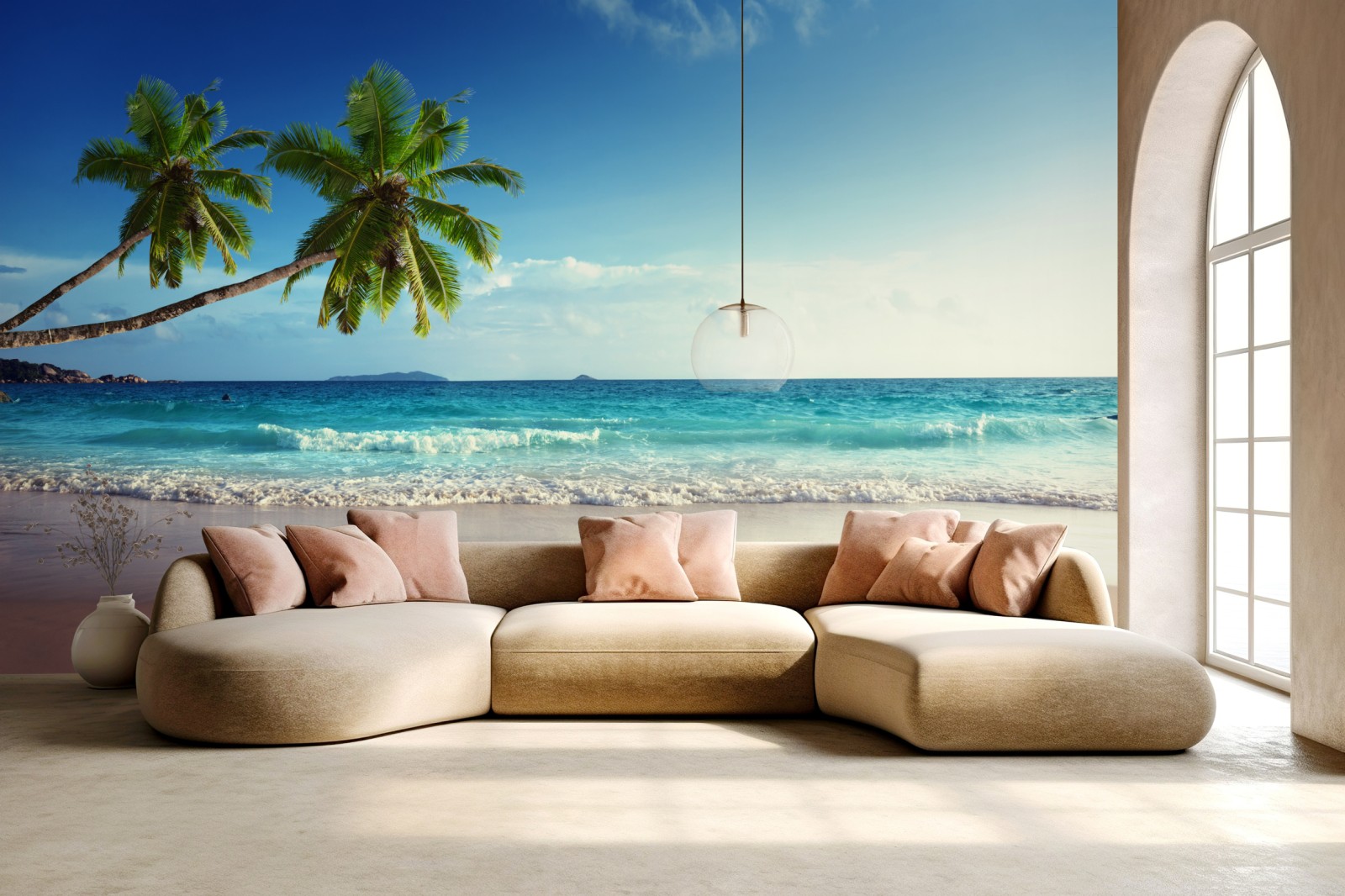 Bringen Sie die ruhige Schönheit eines tropischen Karibikstrandes mit türkisfarbenem Wasser, wiegenden Palmen und feinem Sand in Ihr Zuhause.