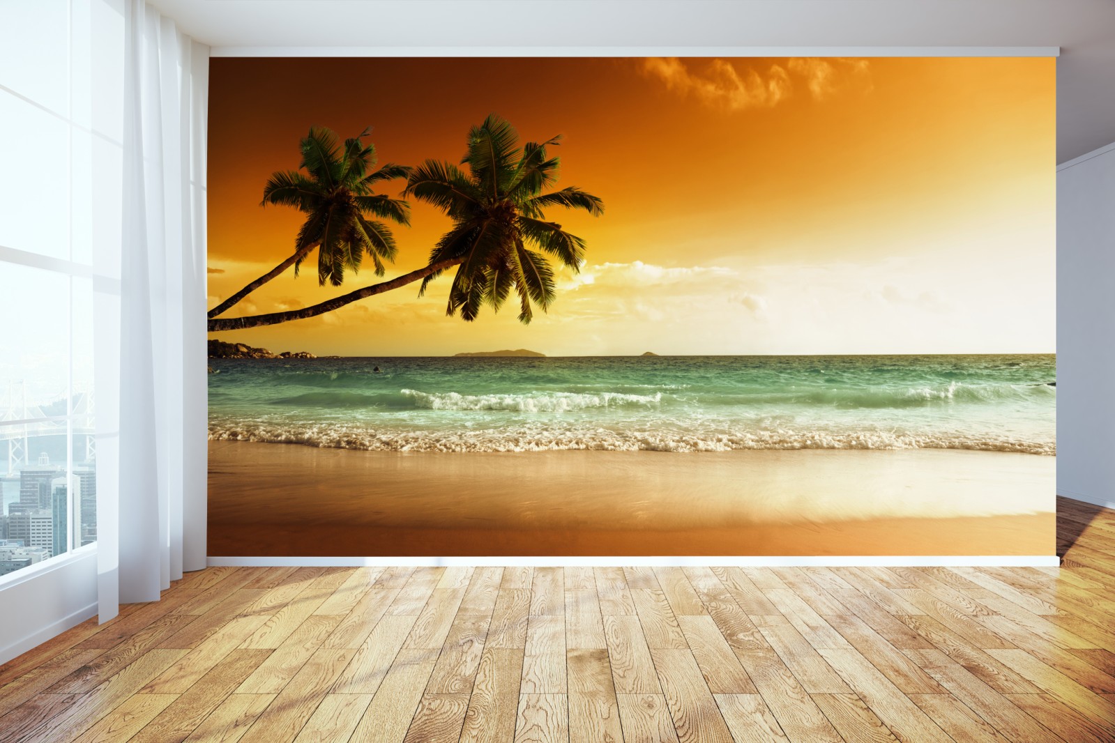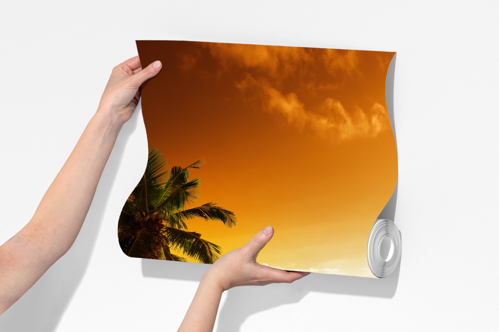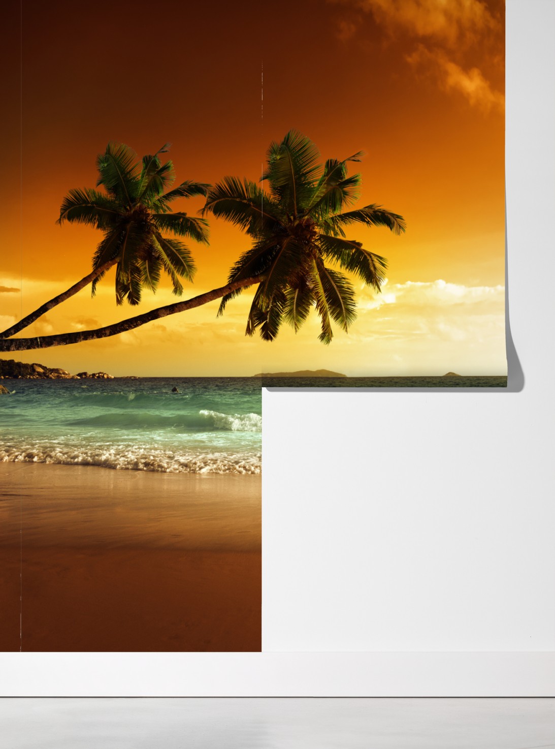 Fototapete karibischer sonnenuntergang am strand mit palmen – Wallnifity®