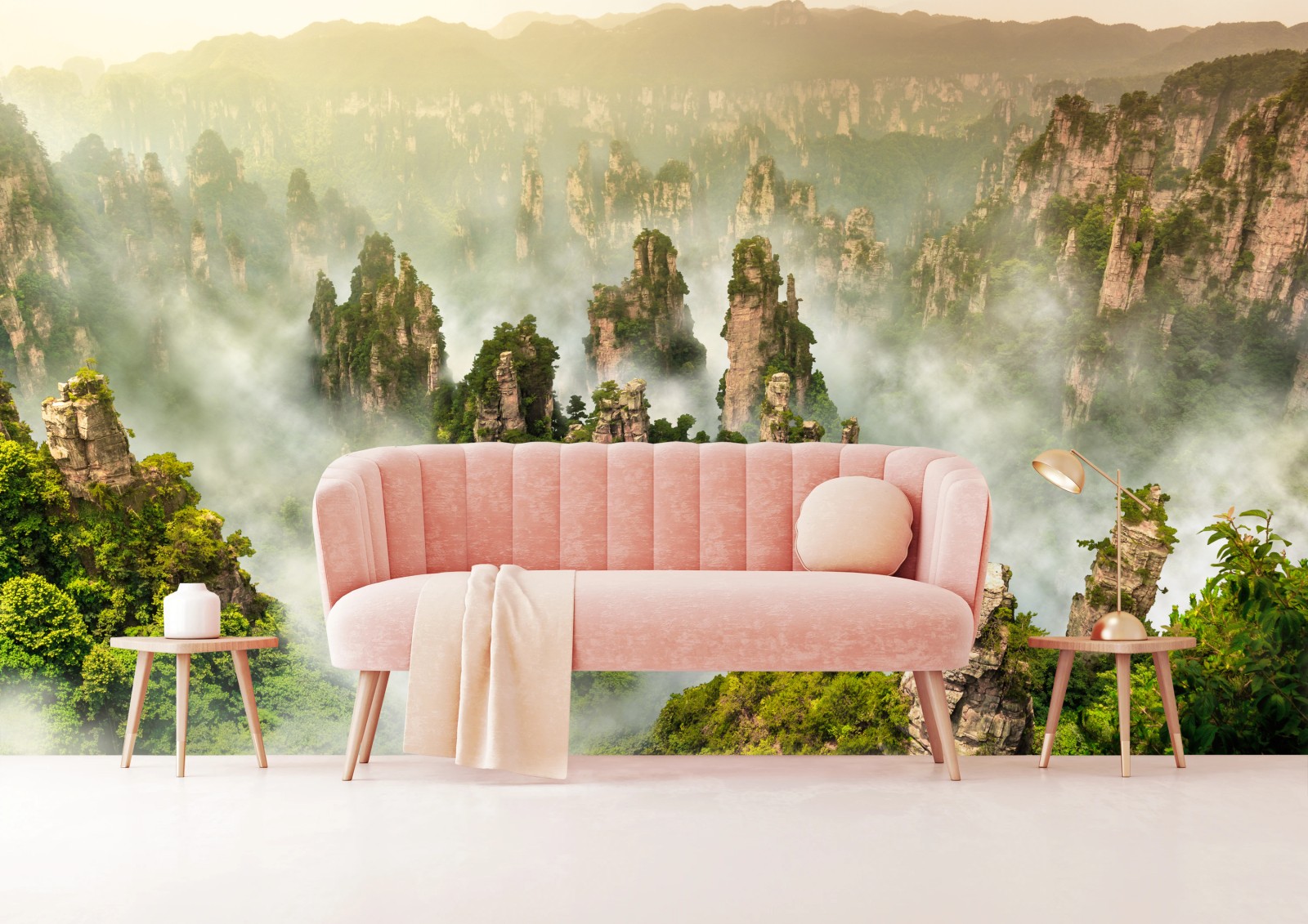Fototapete Neblige säulen von Zhangjiajie