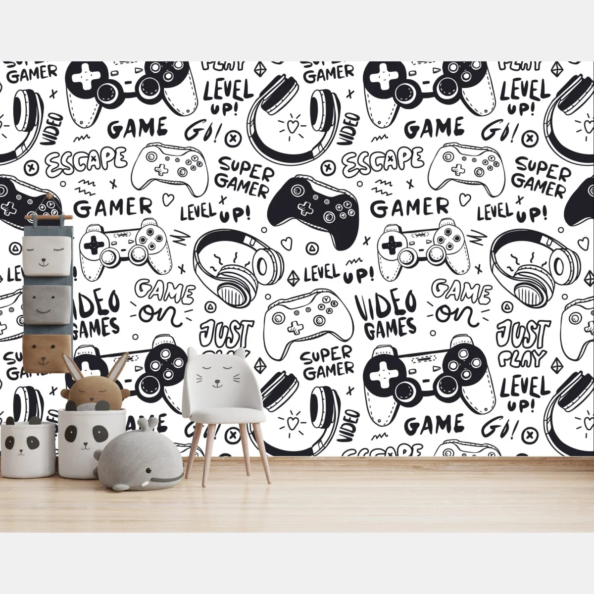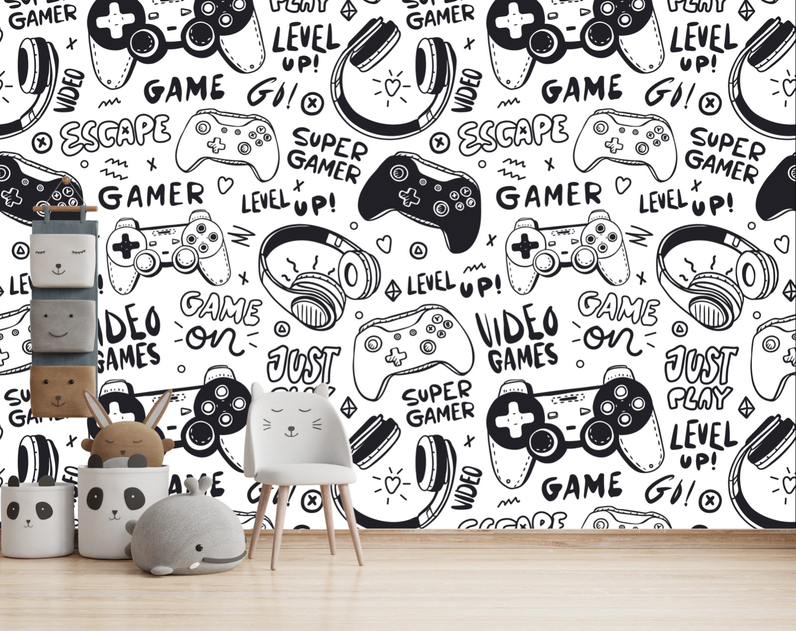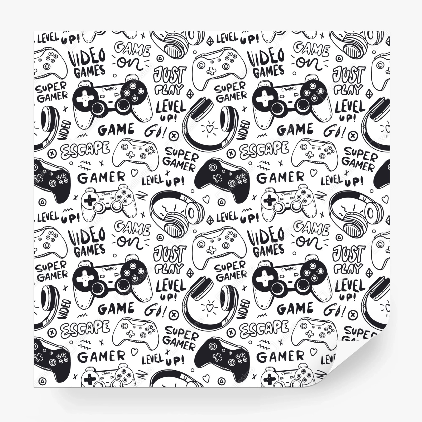Fototapete Doodle-muster mit videospiel-controllern