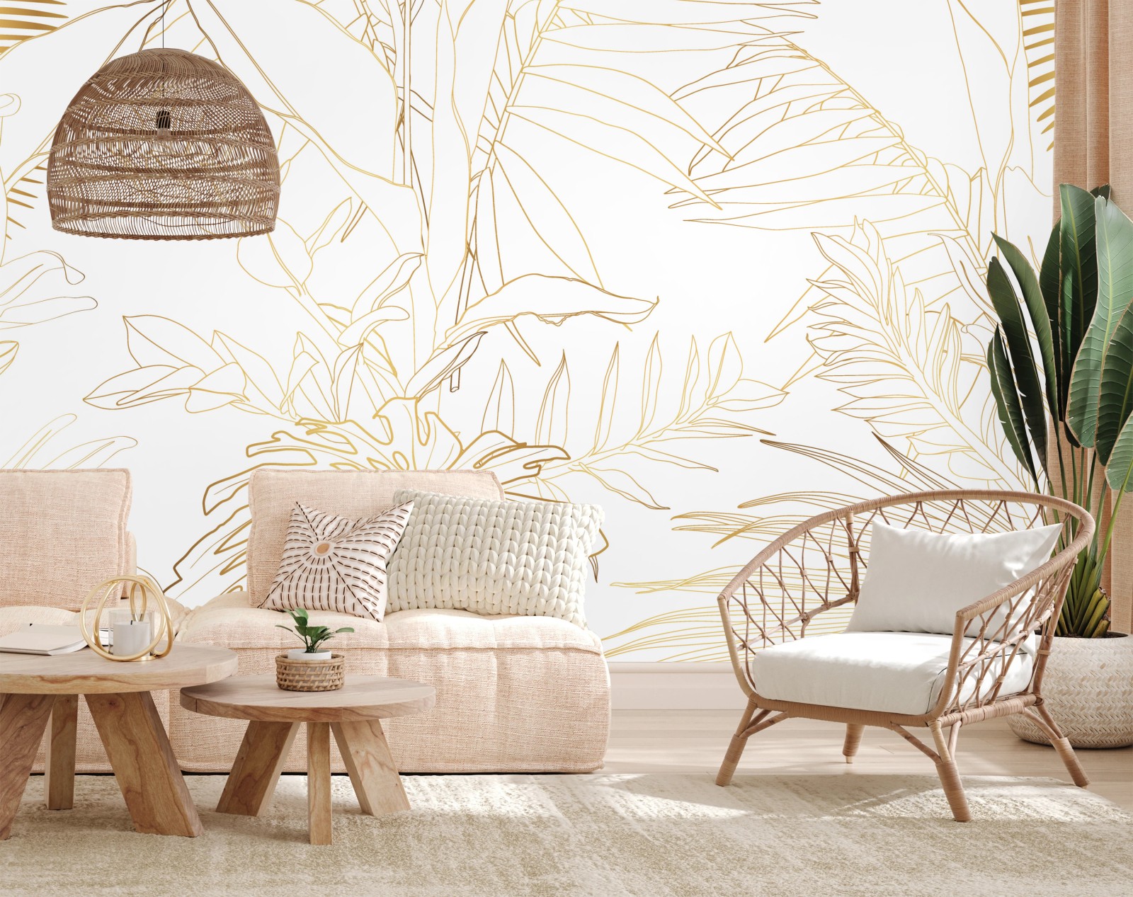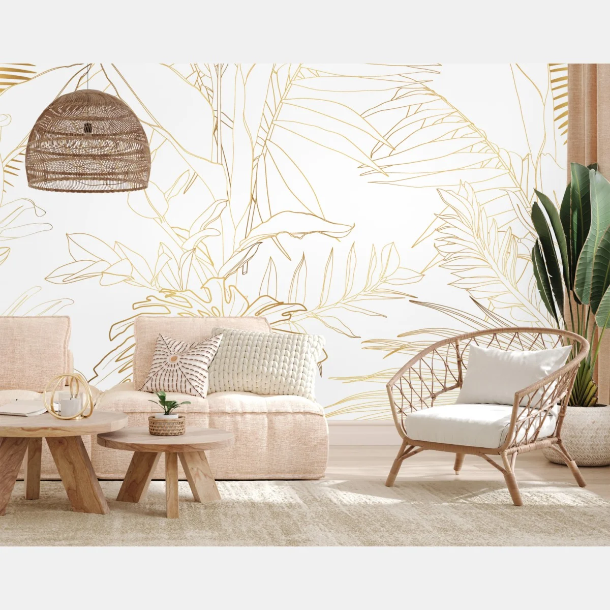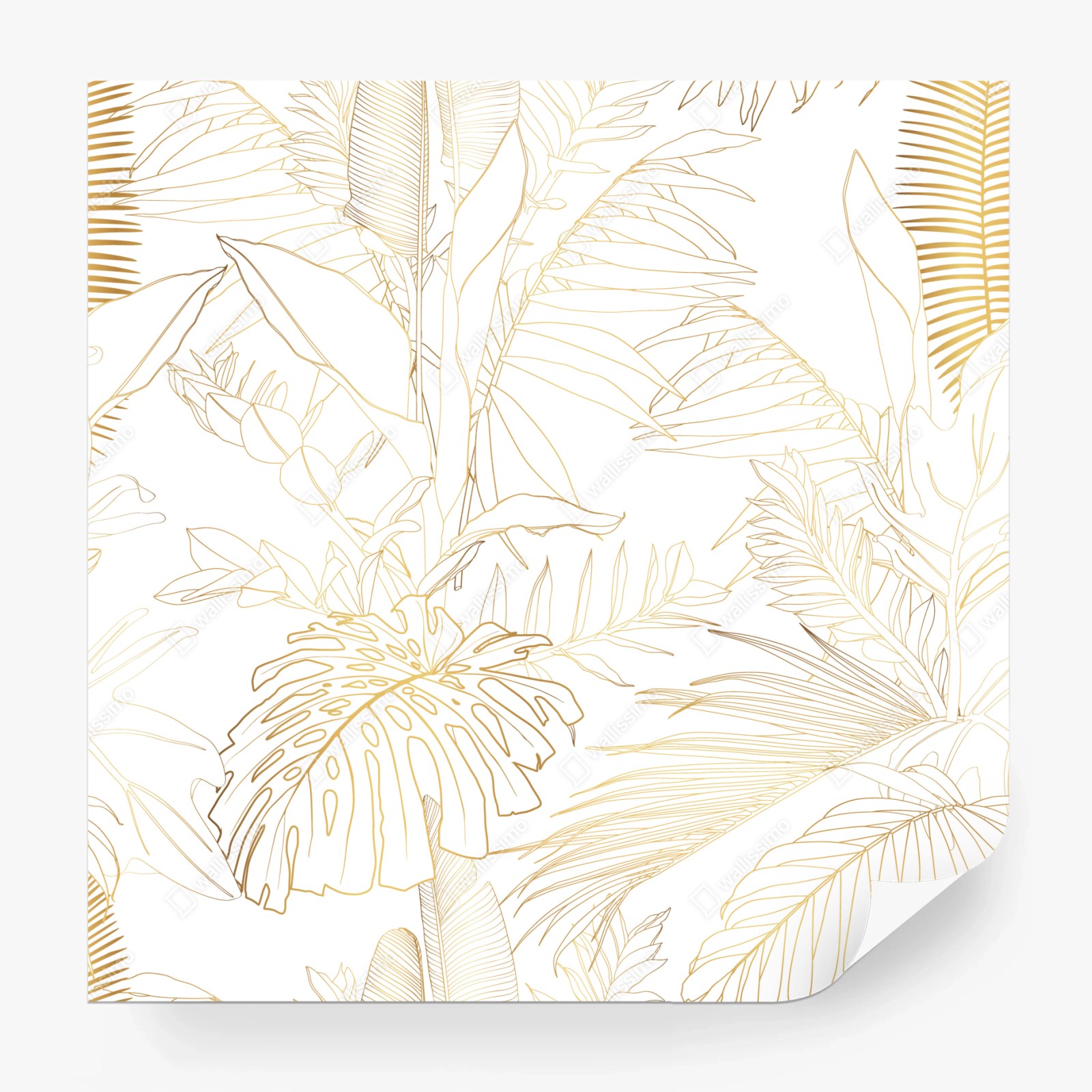 Fototapete Goldene tropische blätter line art