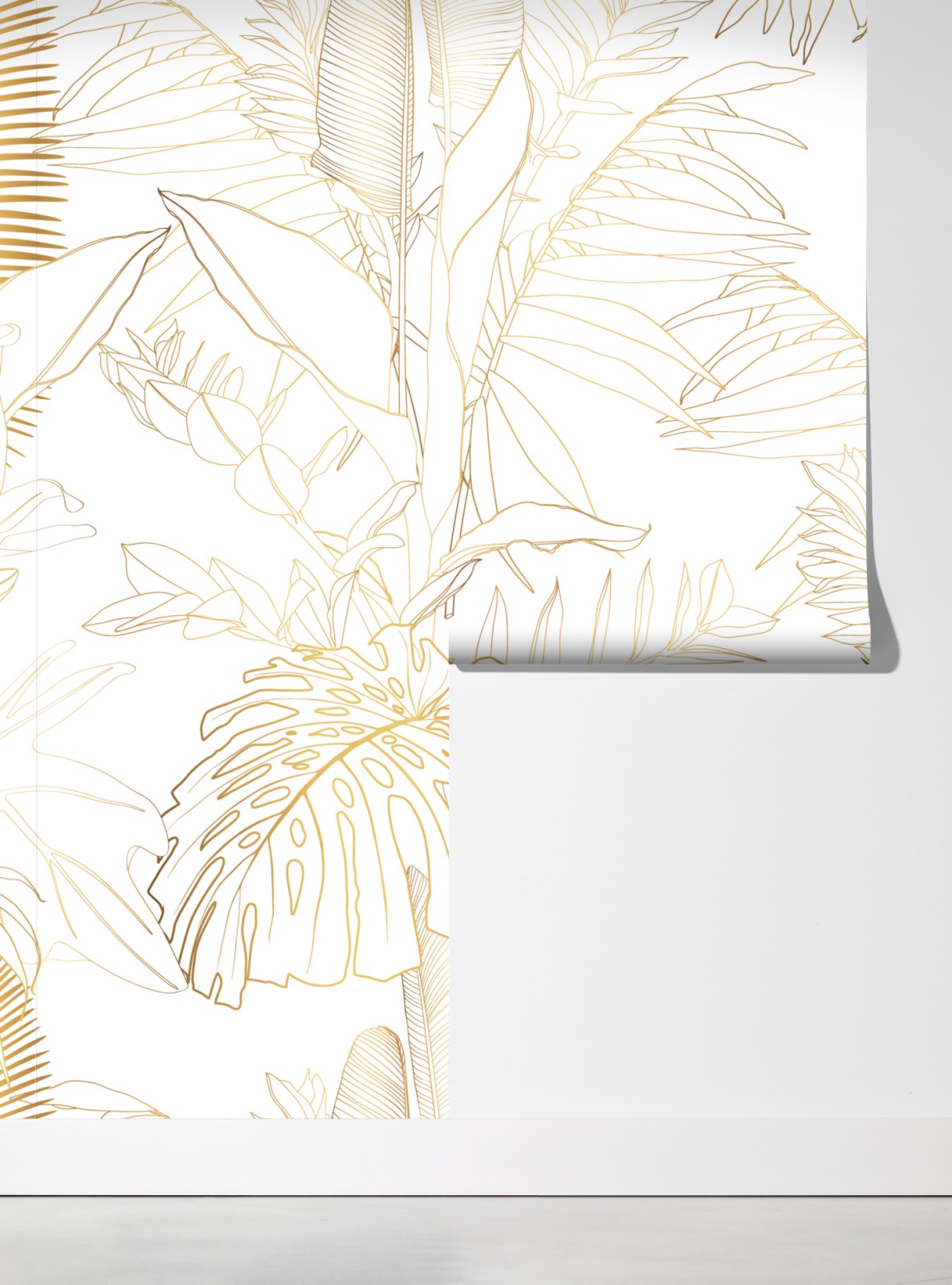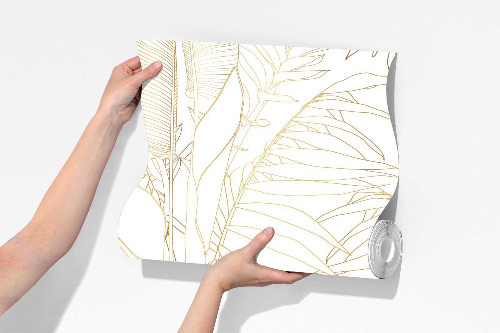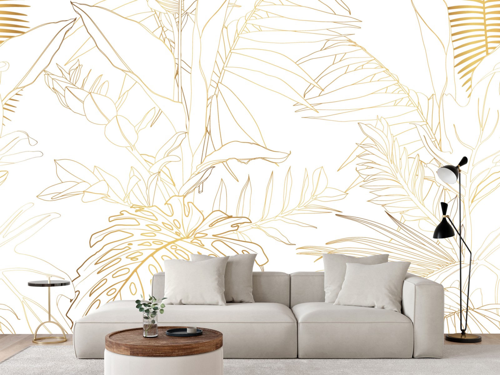 Elegante goldene Blattlinien auf weißem Hintergrund verleihen jedem Raum eine moderne, minimalistische Note.
