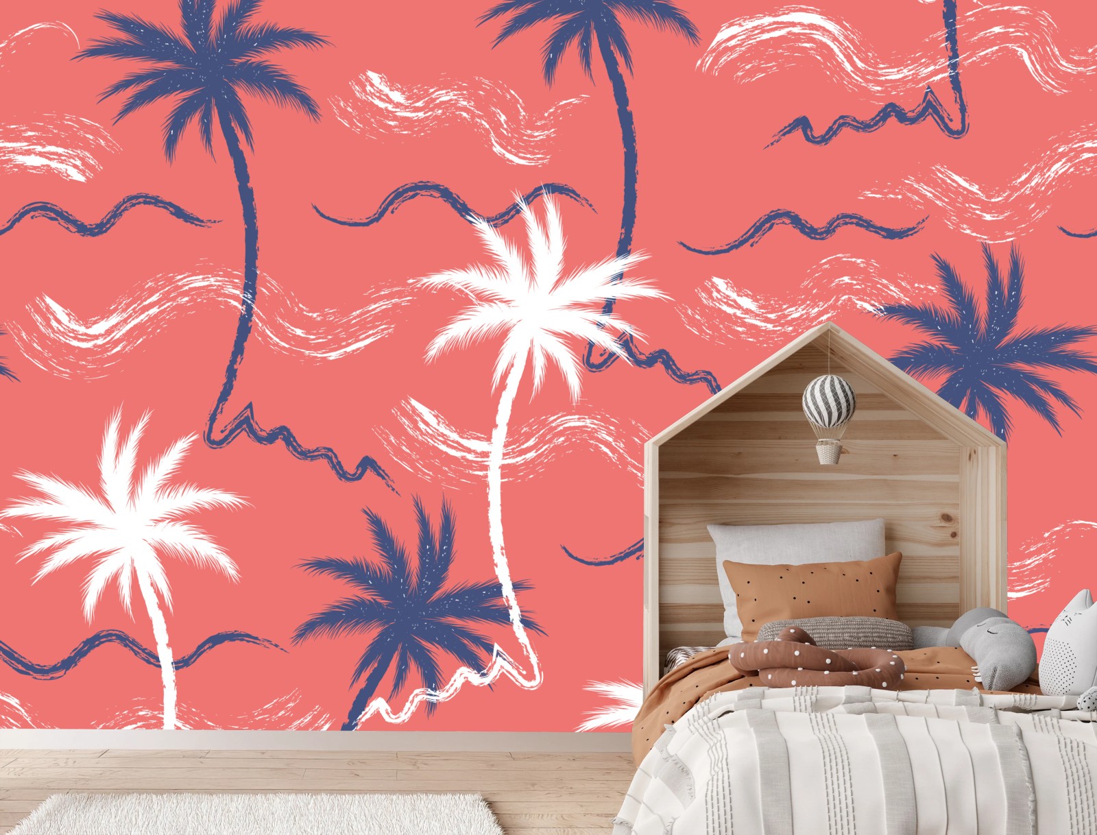 Fototapete Tropisches palmenmuster in koralle und dunkelblau