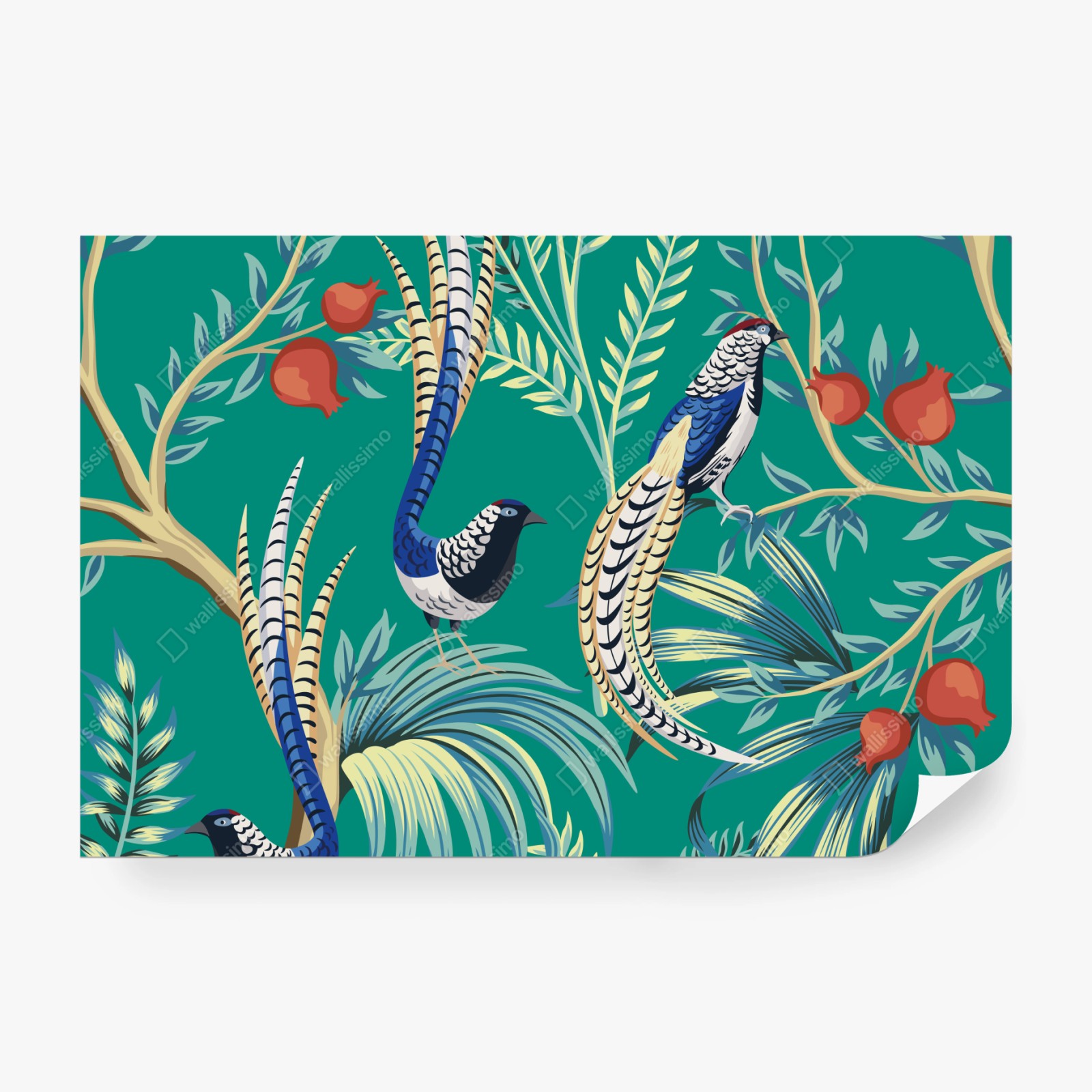 Fototapete Exotisches vogelmuster mit granatäpfeln
