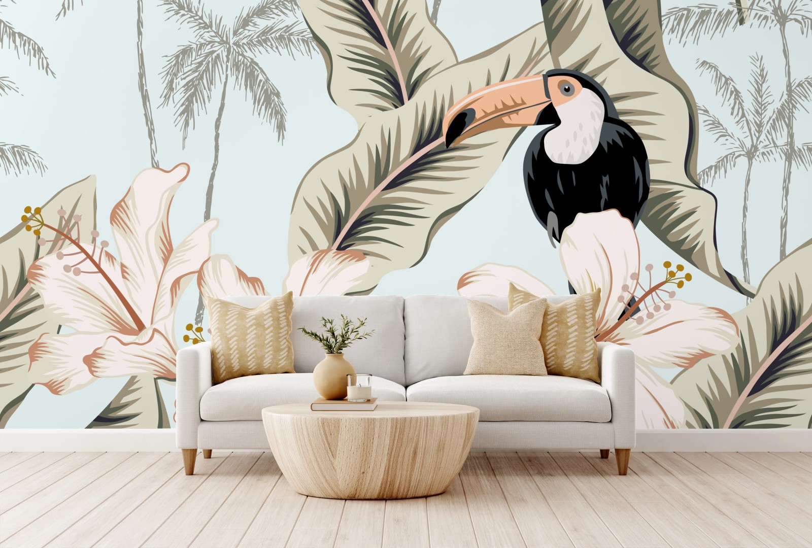Fototapete Tropisches tukan- und hibiskusmotiv