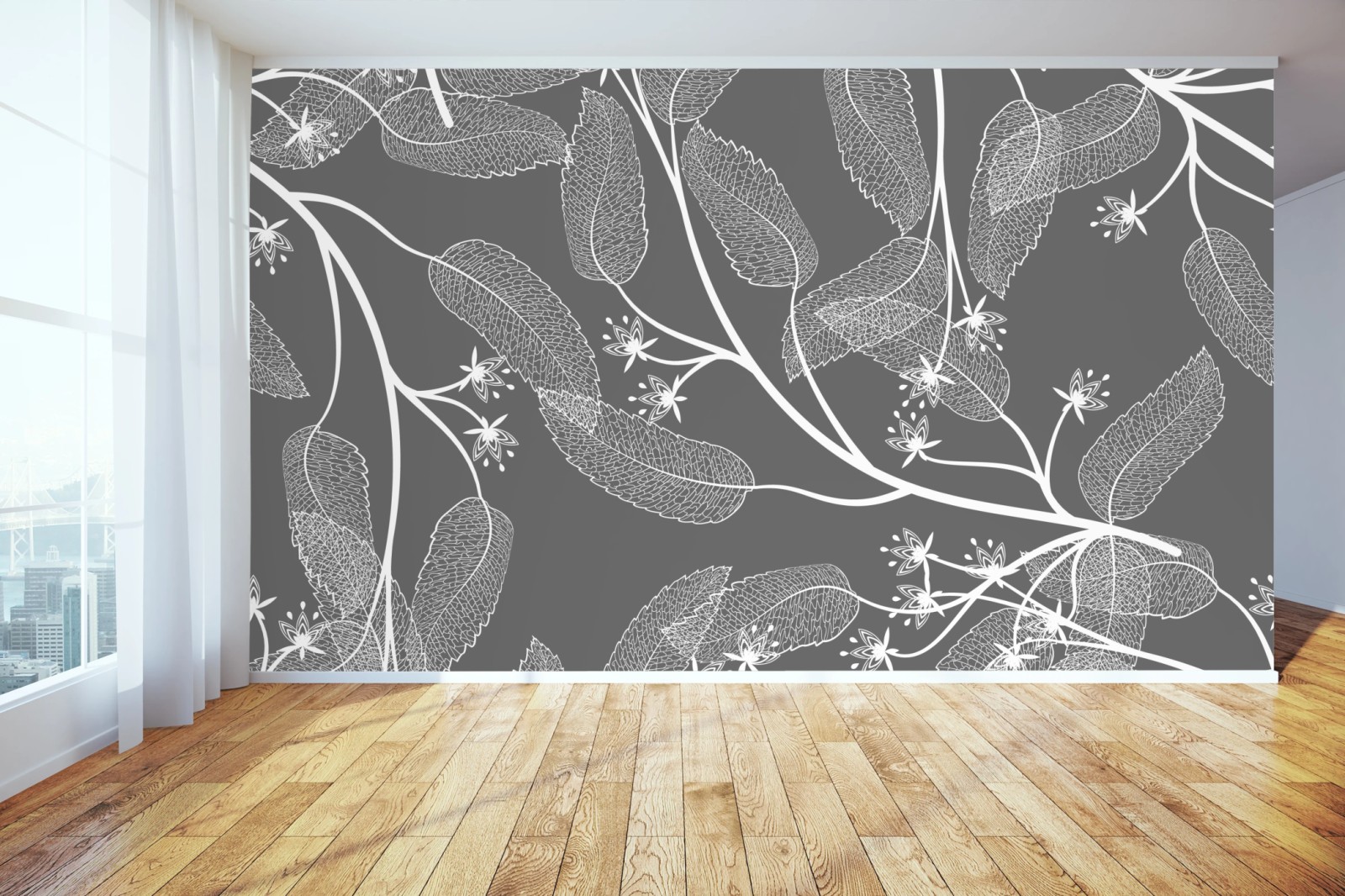 Fototapete Zarte weiße blätter auf grauem hintergrund