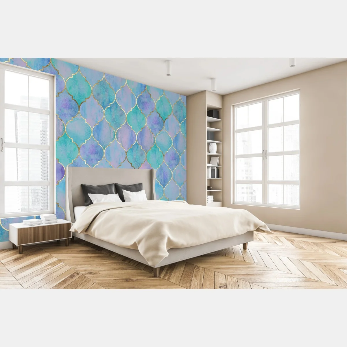 Fototapete Pastell türkis marokkanisches fliesenmuster