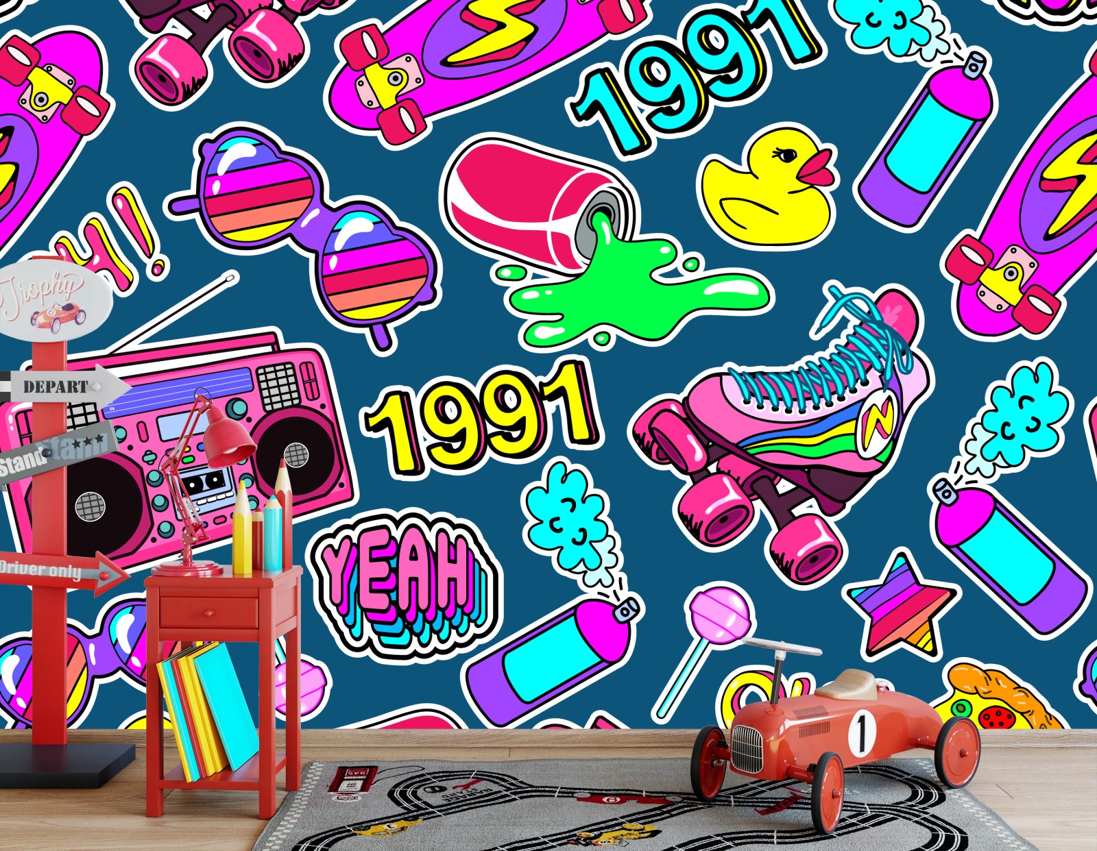 Fototapete Lebendige 90er aufkleber-collage
