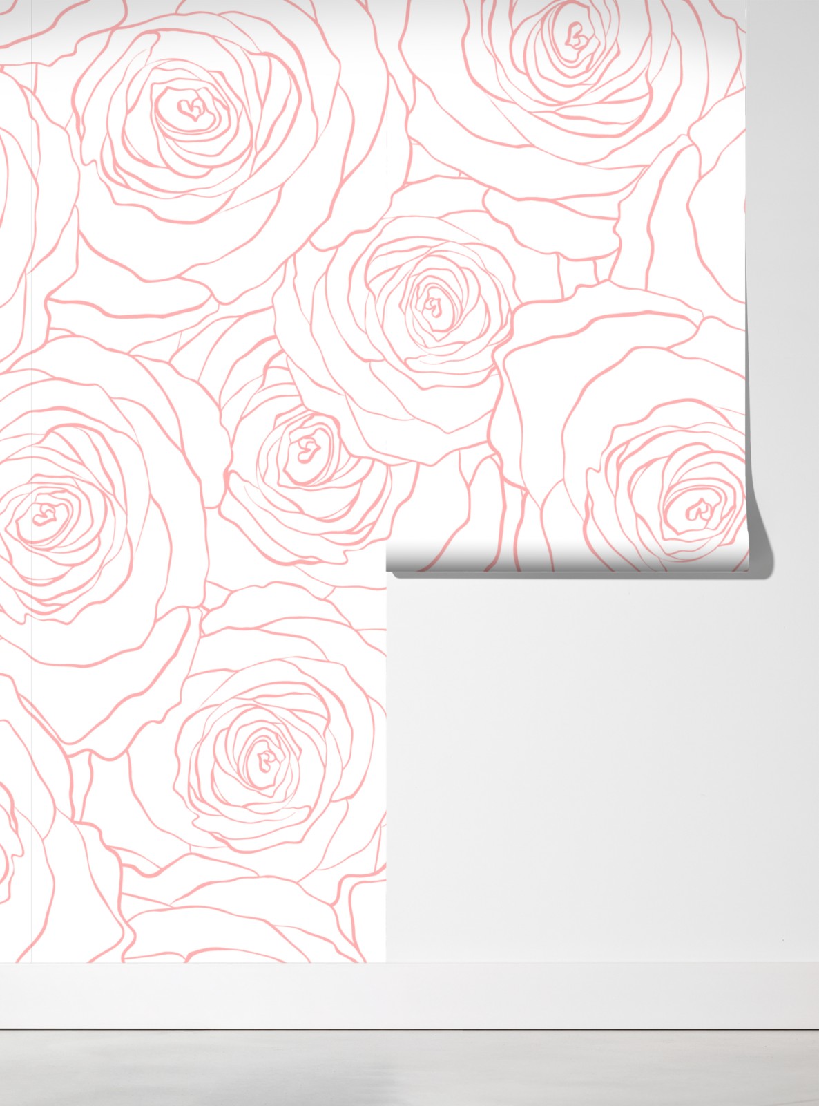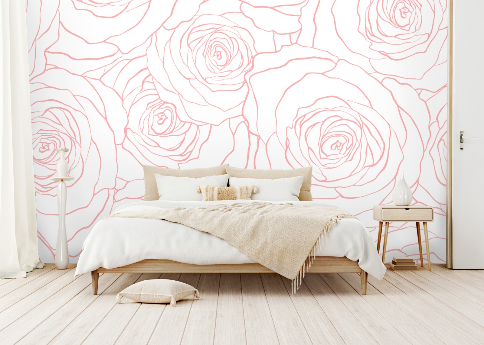 zarte linienzeichnung von rosen im pastellton schafft ein elegantes und beruhigendes motiv, perfekt für schlafzimmer und kinderzimmer.