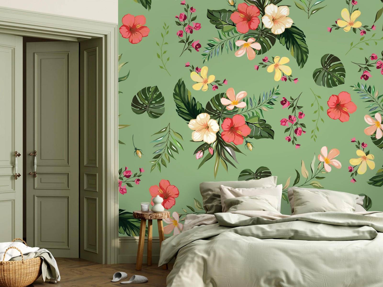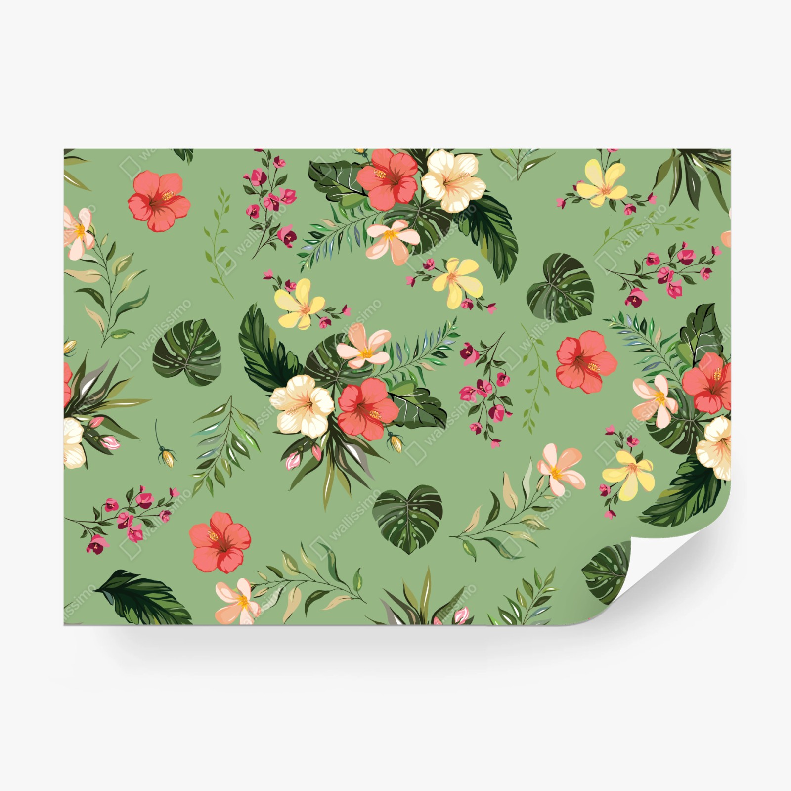 Fototapete Grünes tropisches hibiskusmuster