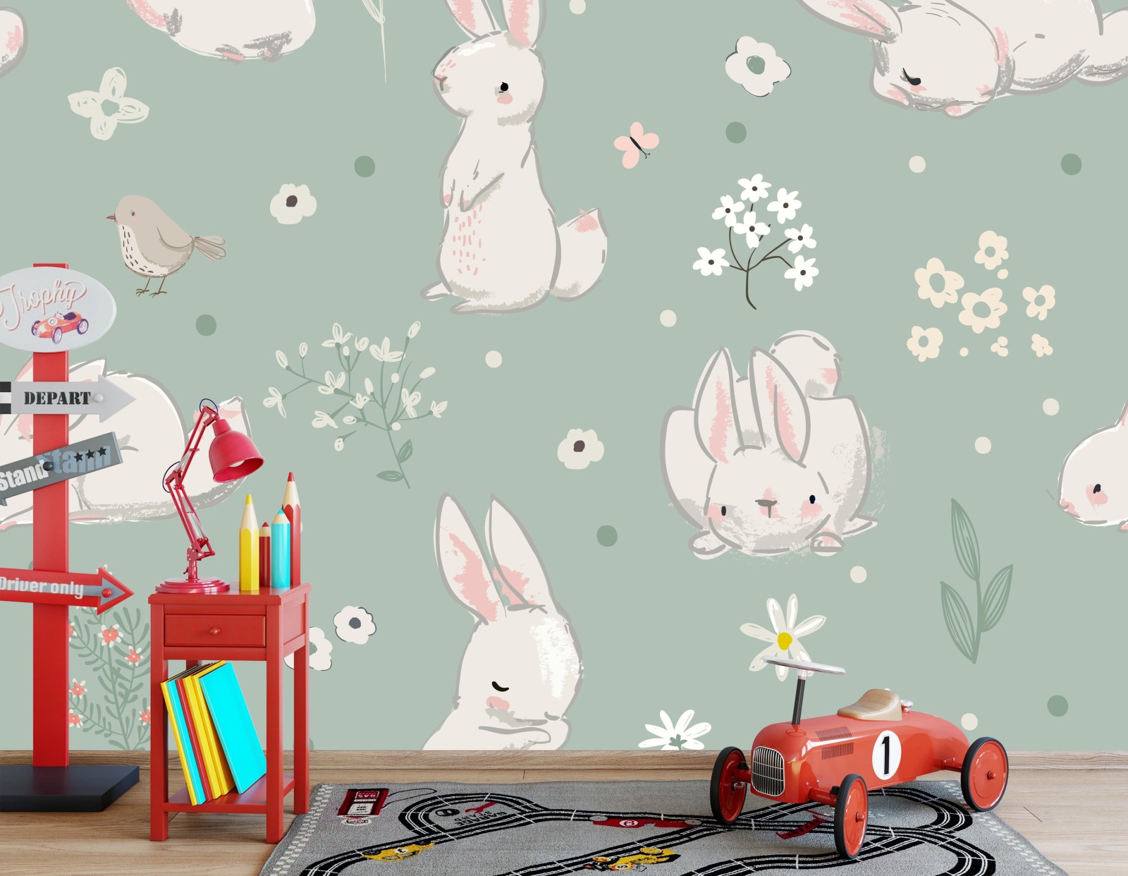 Fototapete Pastell häschen muster fürs kinderzimmer