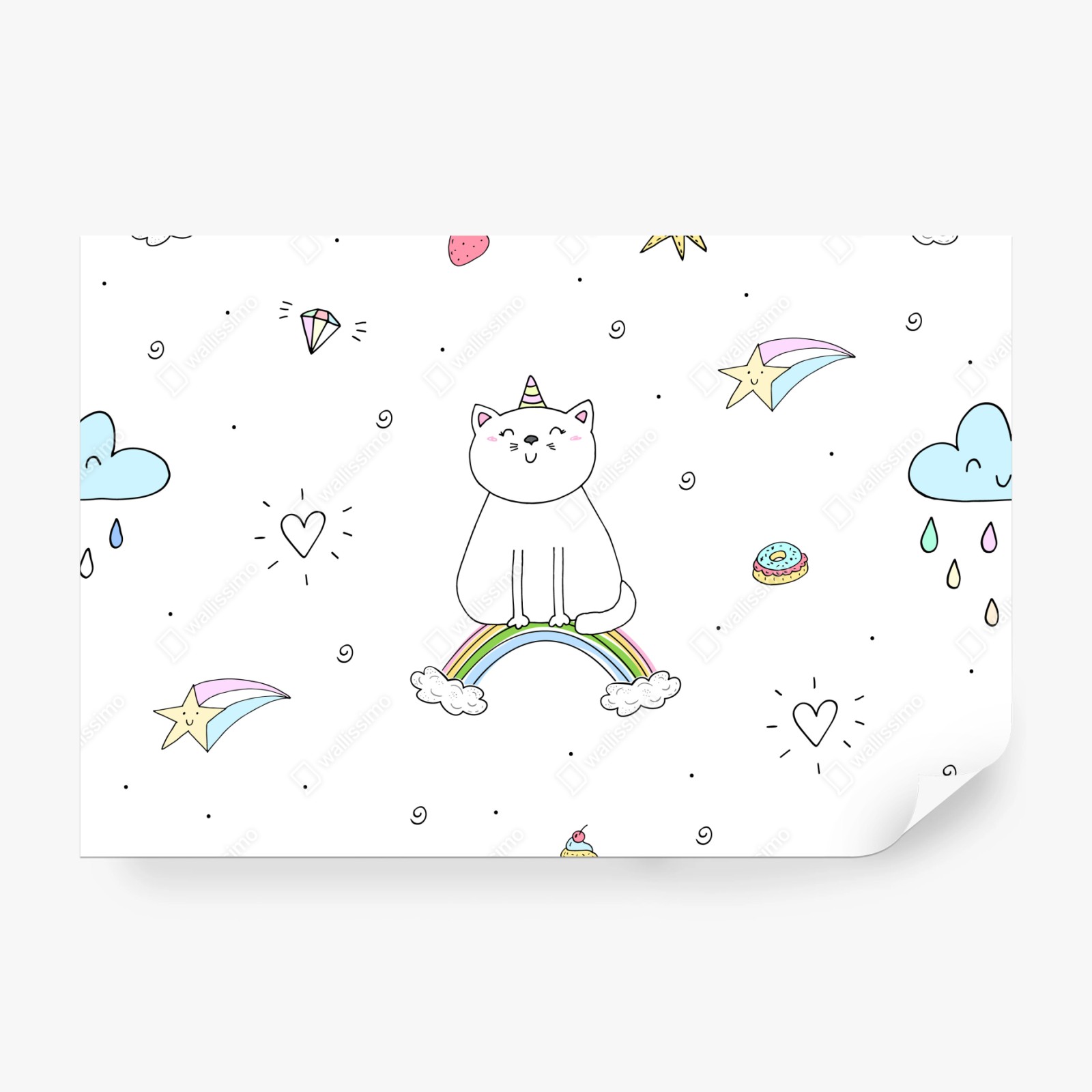 Fototapete Pastell-einhornkatze auf dem regenbogen