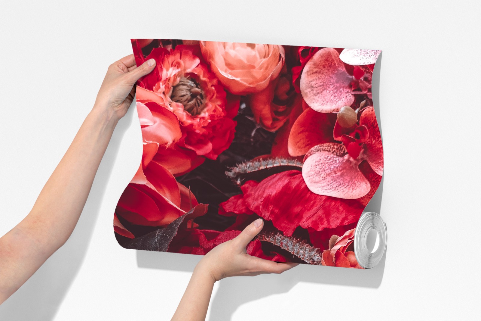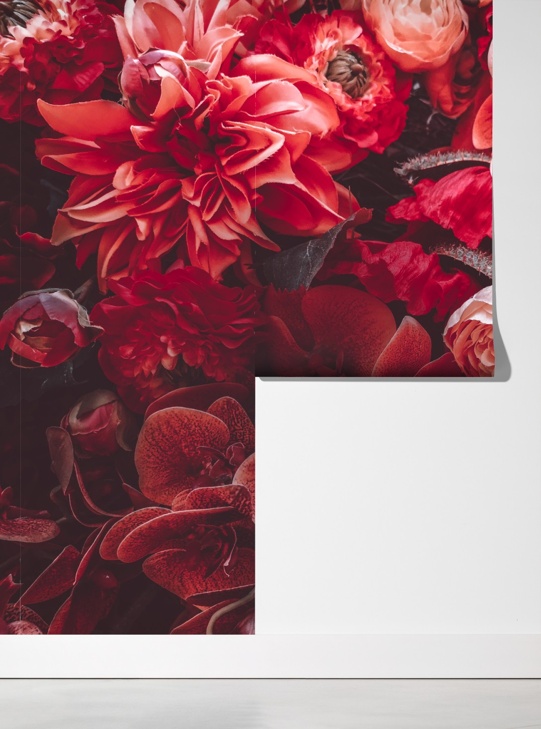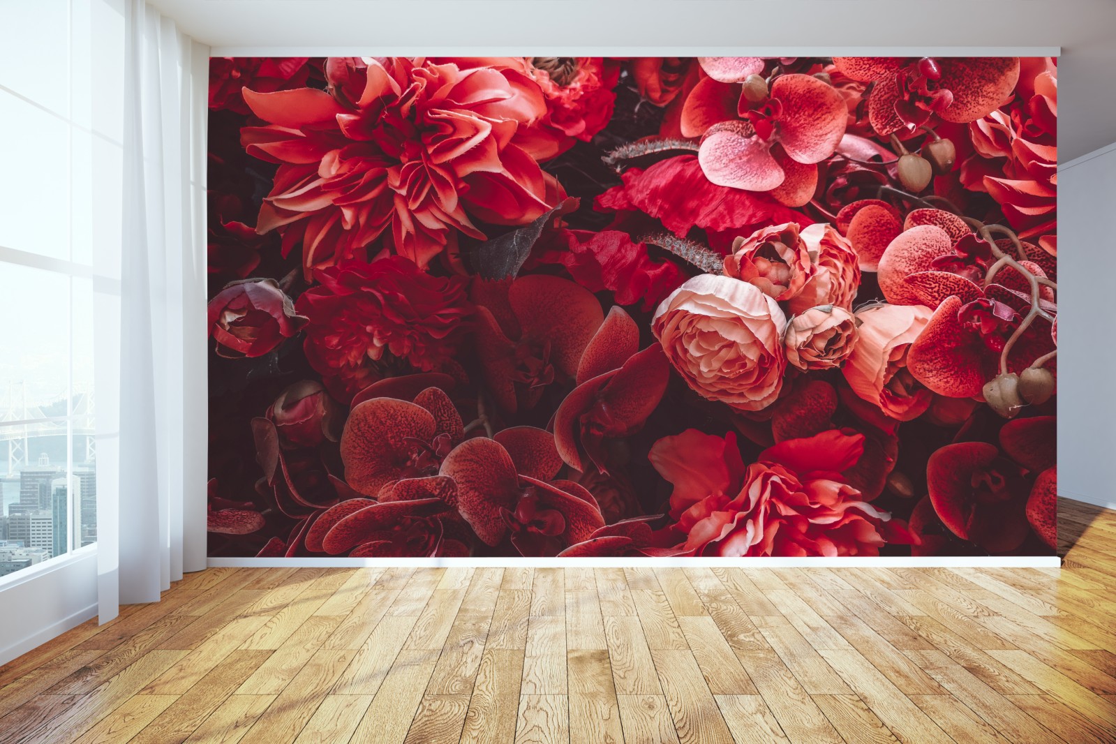 Fototapete prächtiges blütenmeer in tiefroten tönen
