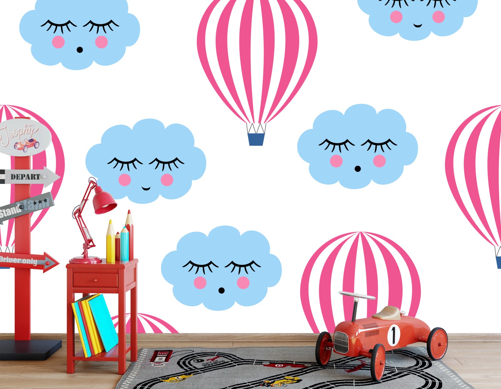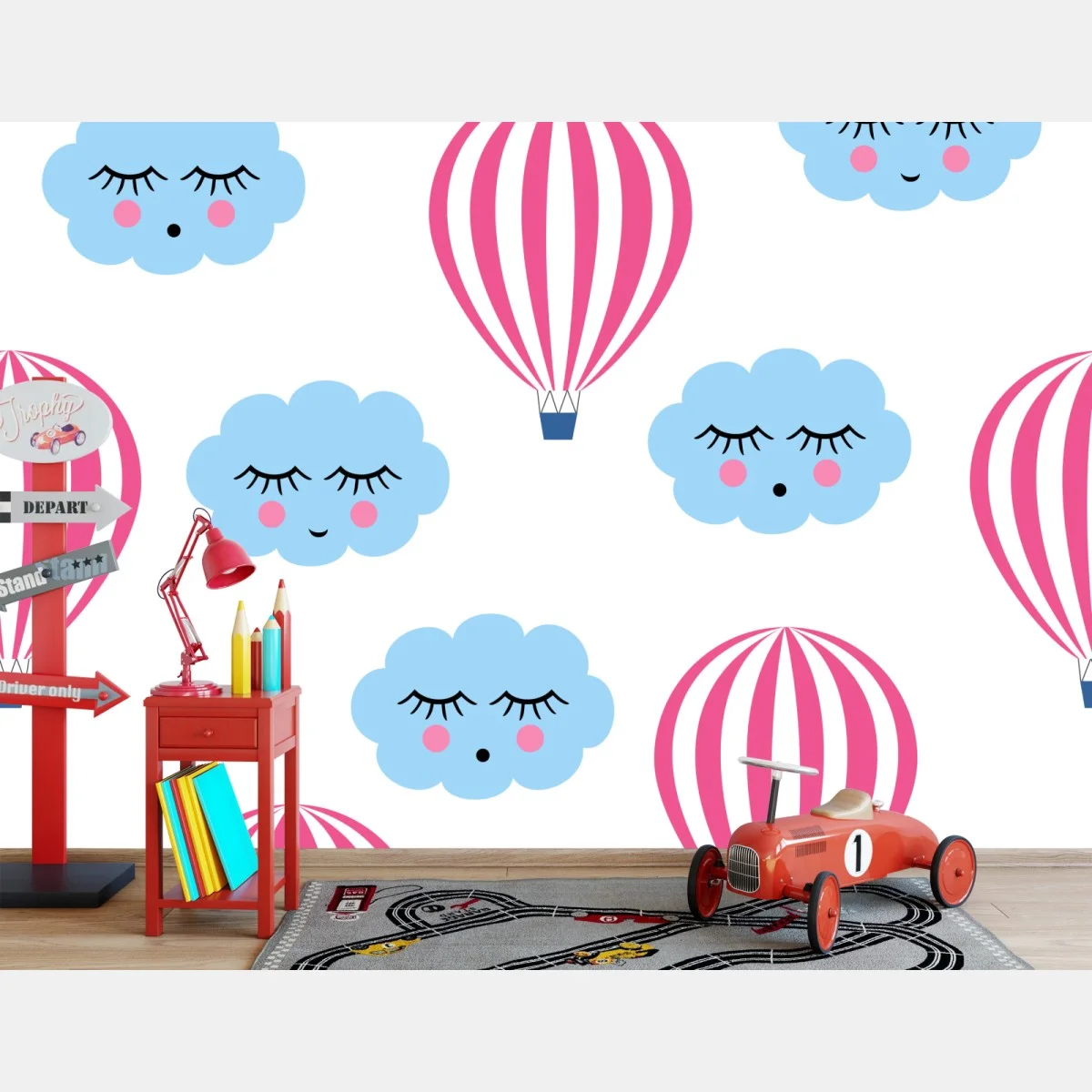 Fototapete Pastellwolken und luftballons muster
