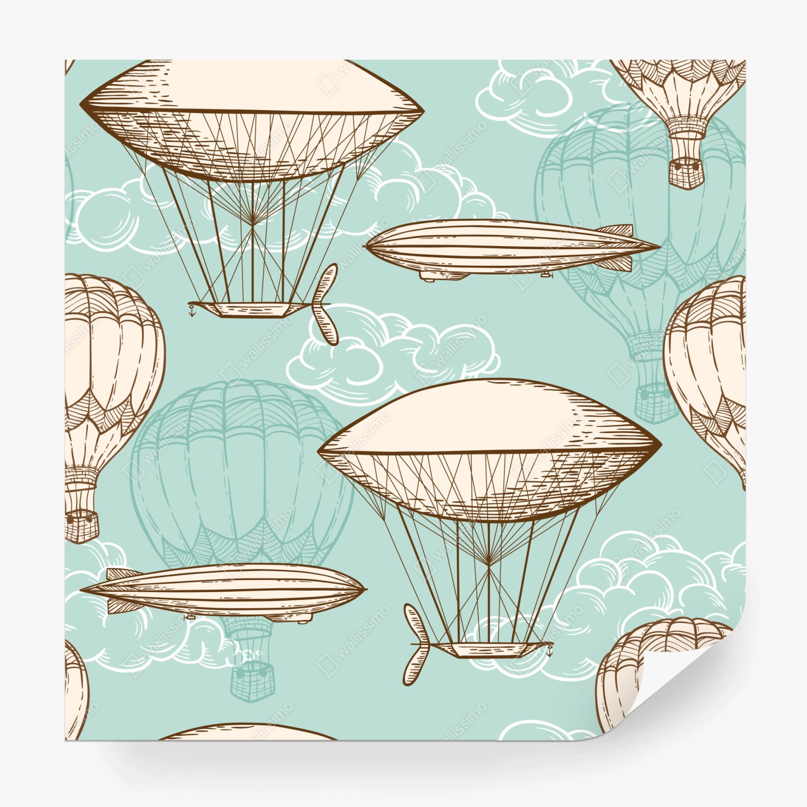Fototapete Vintage-motiv mit luftschiffen und ballons