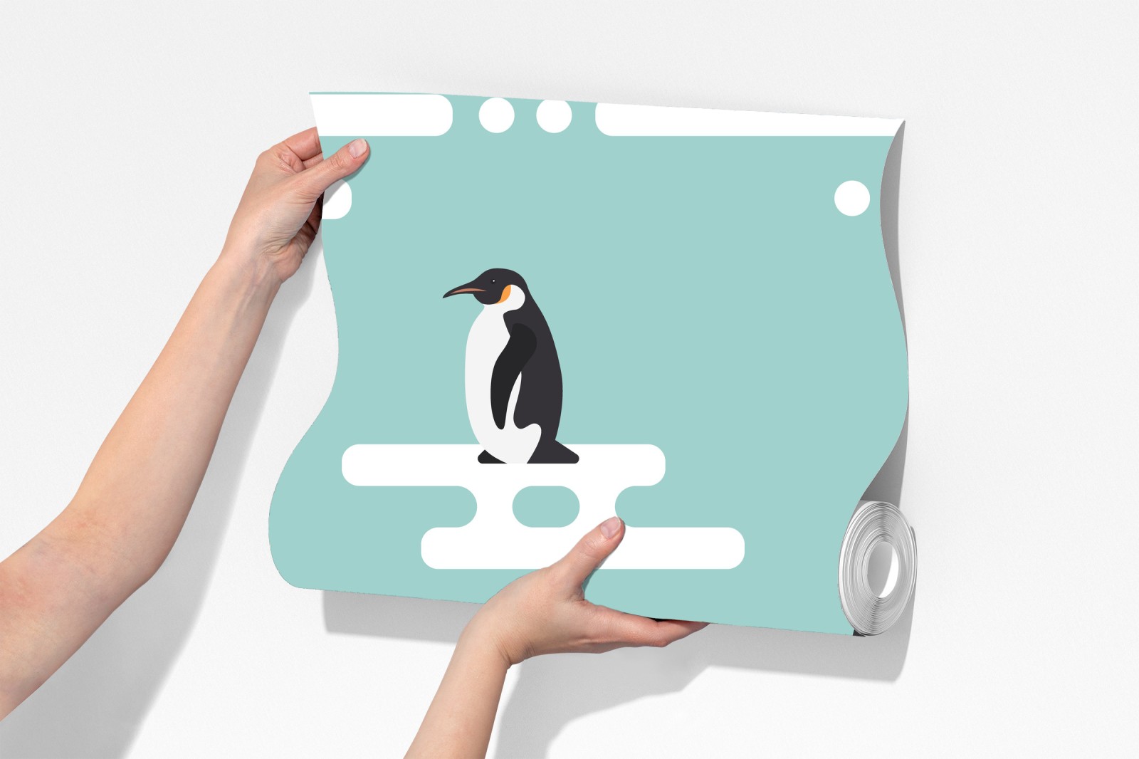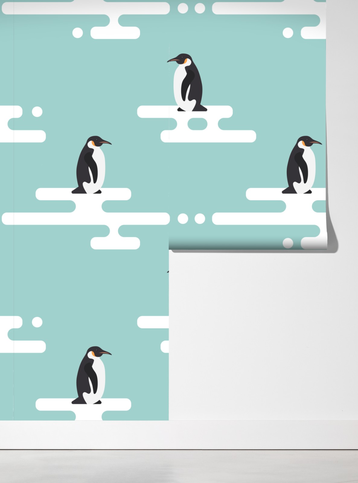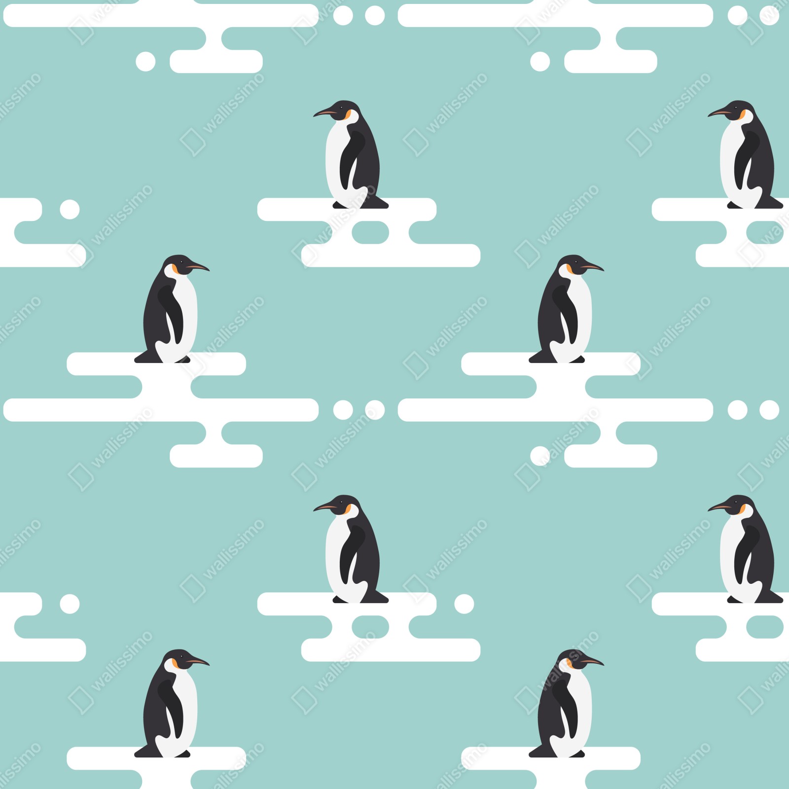 Verspielte nahtlose pinguinillustration in sanften türkisfarbenen Tönen verleiht kinderzimmern eine gemütliche, märchenhafte Atmosphäre.