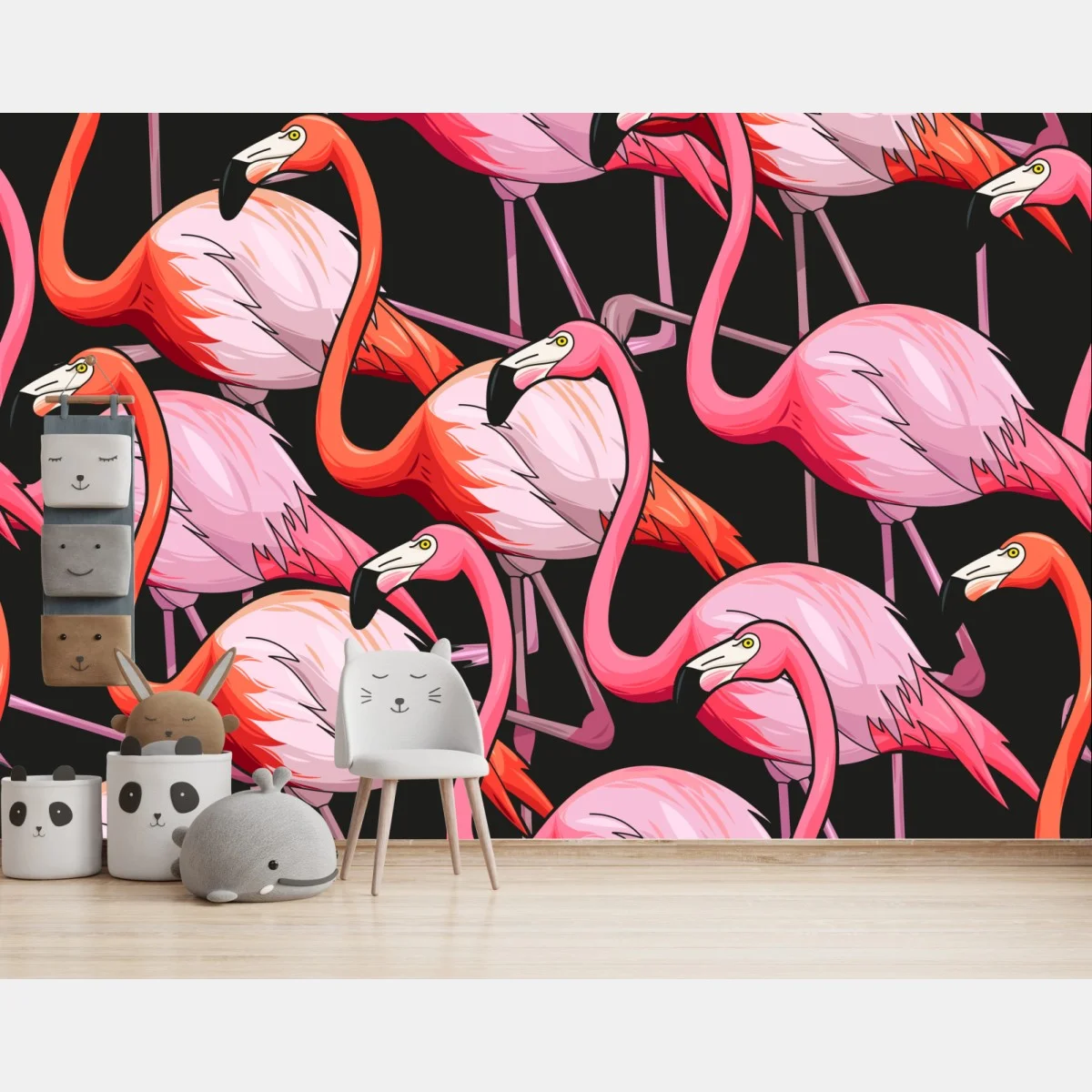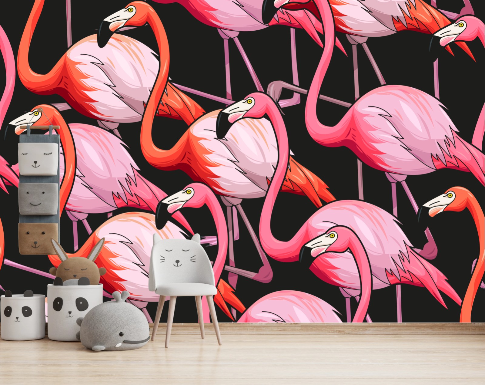Fototapete Rosa flamingo-muster auf schwarzem hintergrund